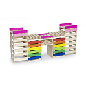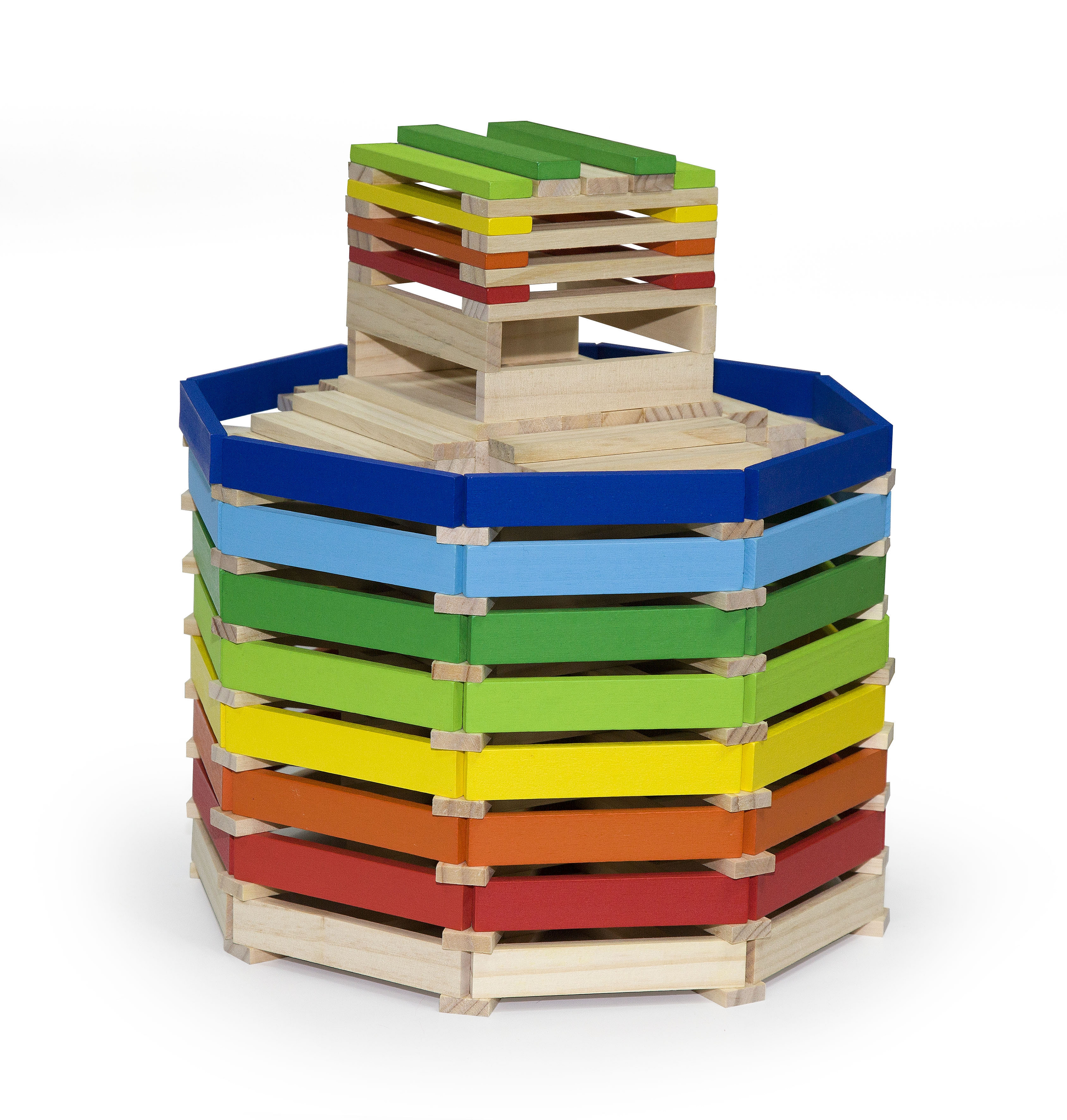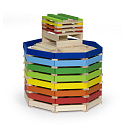 Całość wykonana została z drewna lakierowanego, pomalowana nietoksycznymi farbami w żywe barwy, które zadowolą każdego użytkownika i dadzą mnóstwo radości z zabawy.