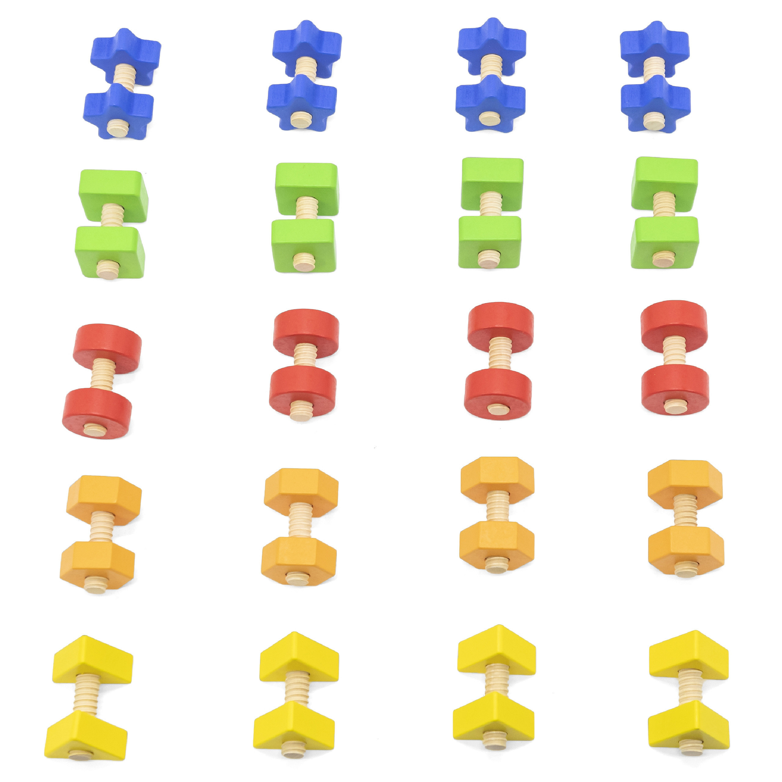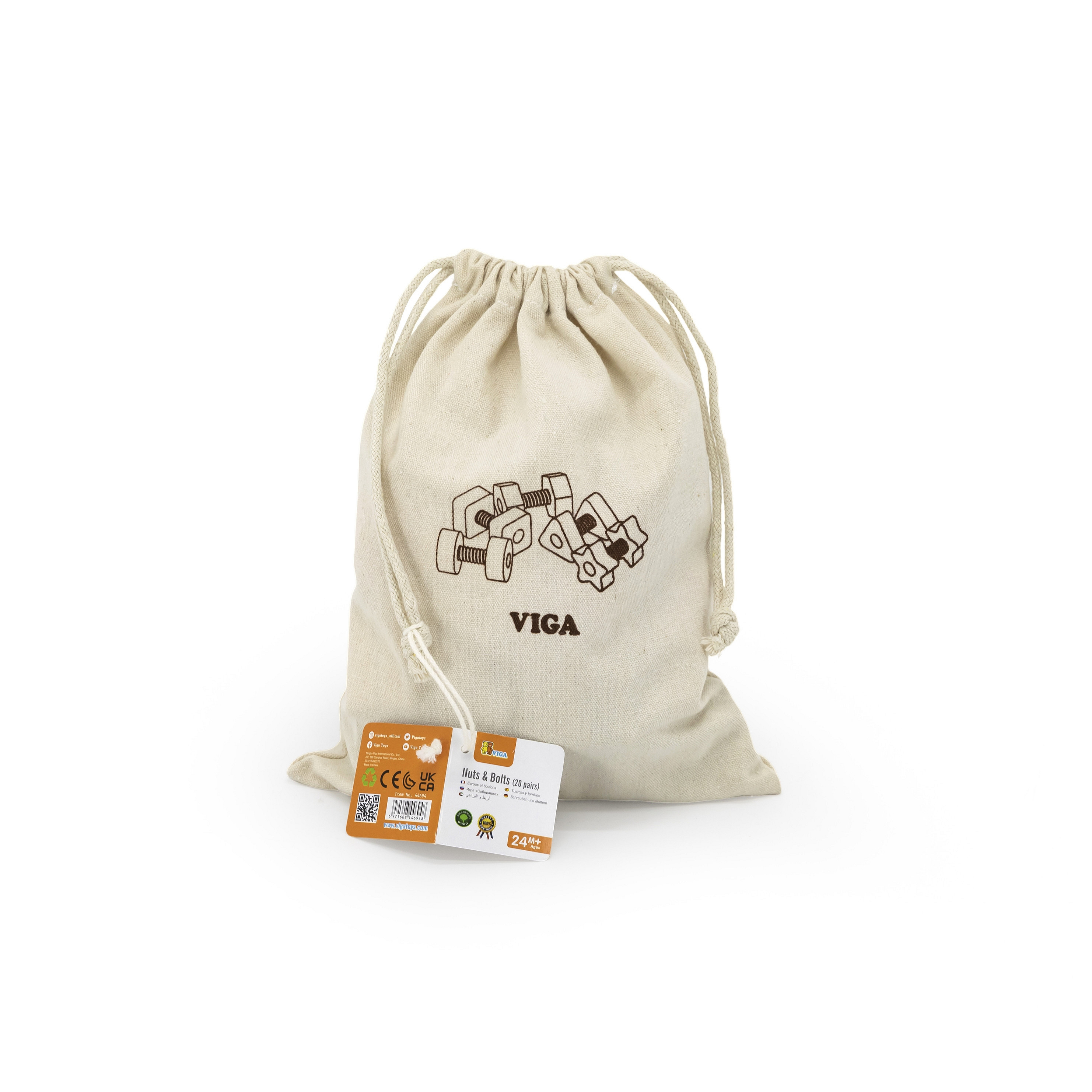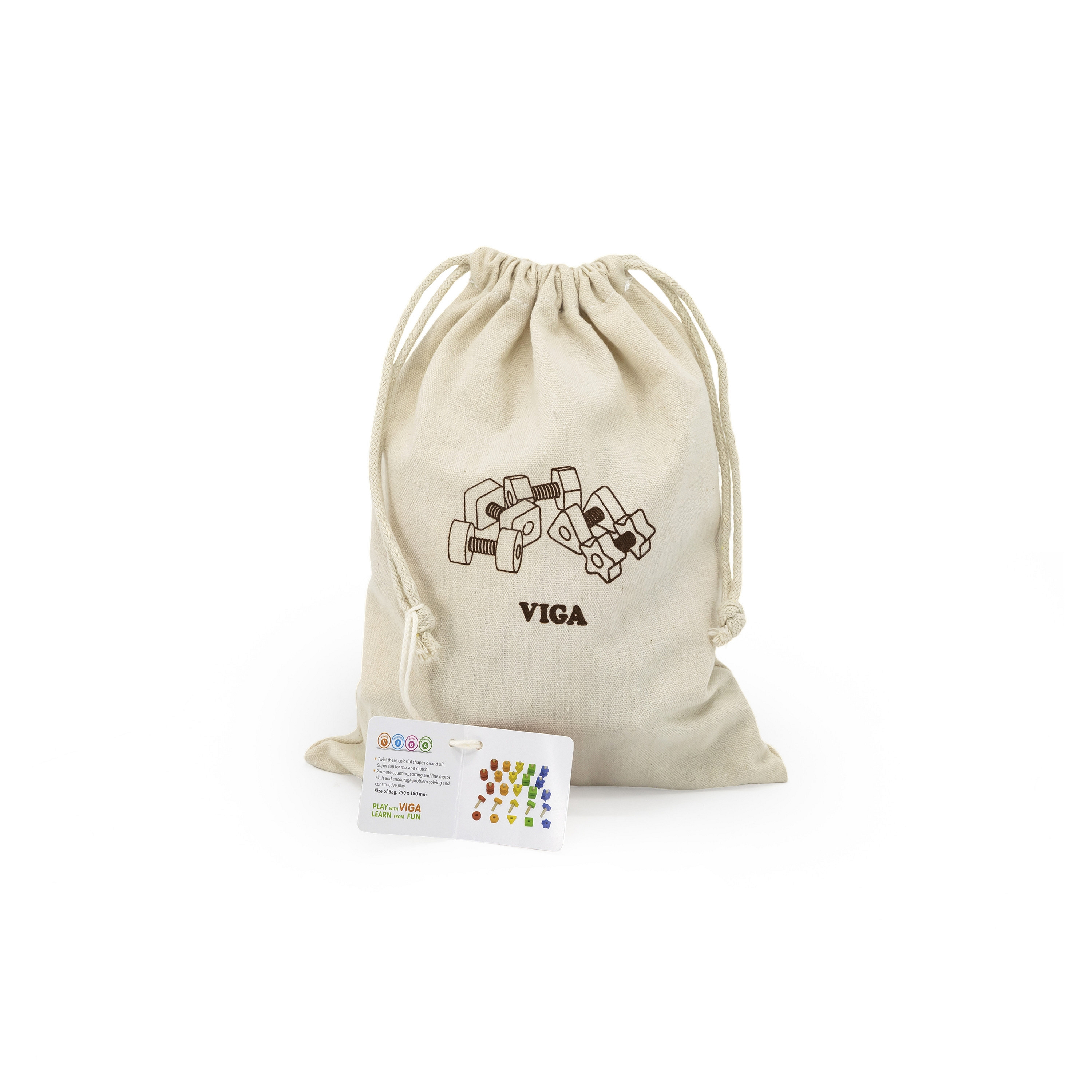 Nakrędki i i Śrubki to zabawka zręcznościowa marki VIGA polegająca na wkręcaniu, wykręcaniu kolorowych kształtów. Świetna zabawa dla dziecka podczas mieszania i dopasowywania a przy okazji ucząca liczenia, kolorów i kształtów. Wkręcanie i odkręcanie poprawi u malucha zręczność manualną i wzrokową koordynację ruchową Zestaw zawiera 40 elementów, 20 par nakrętek i śrub w 5 jaskrawych kolorach i kształtach oraz bawełnianą torbę ułatwiającą przechowywanie.