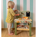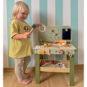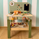 - - Stabilny drewniany blat warsztatowy z miejscem pracy.