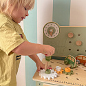 - - Posiada zegar ze wskazówkami, co rozwija umiejętność poznawania czasu.