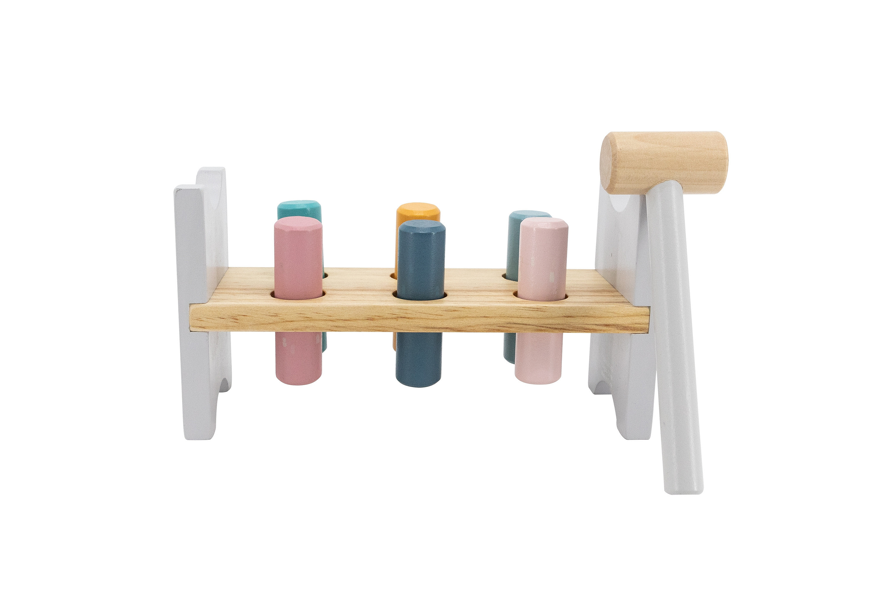 Kolorowy przebijak od firmy Viga to zabawka którą pokocha każde dziecko. Delikatne pastelowe kolory oraz wygodny w uchwyceniu młotek zachęcą każdego malucha do zabawy. Dziecko bawiąc się rozwija precyzję ruchów rączek, zręczność oraz coraz lepiej rozróżnia kolory, a w przyszłości nabyta precyzja ruchów i zręczność ułatwi dziecku naukę pisania.