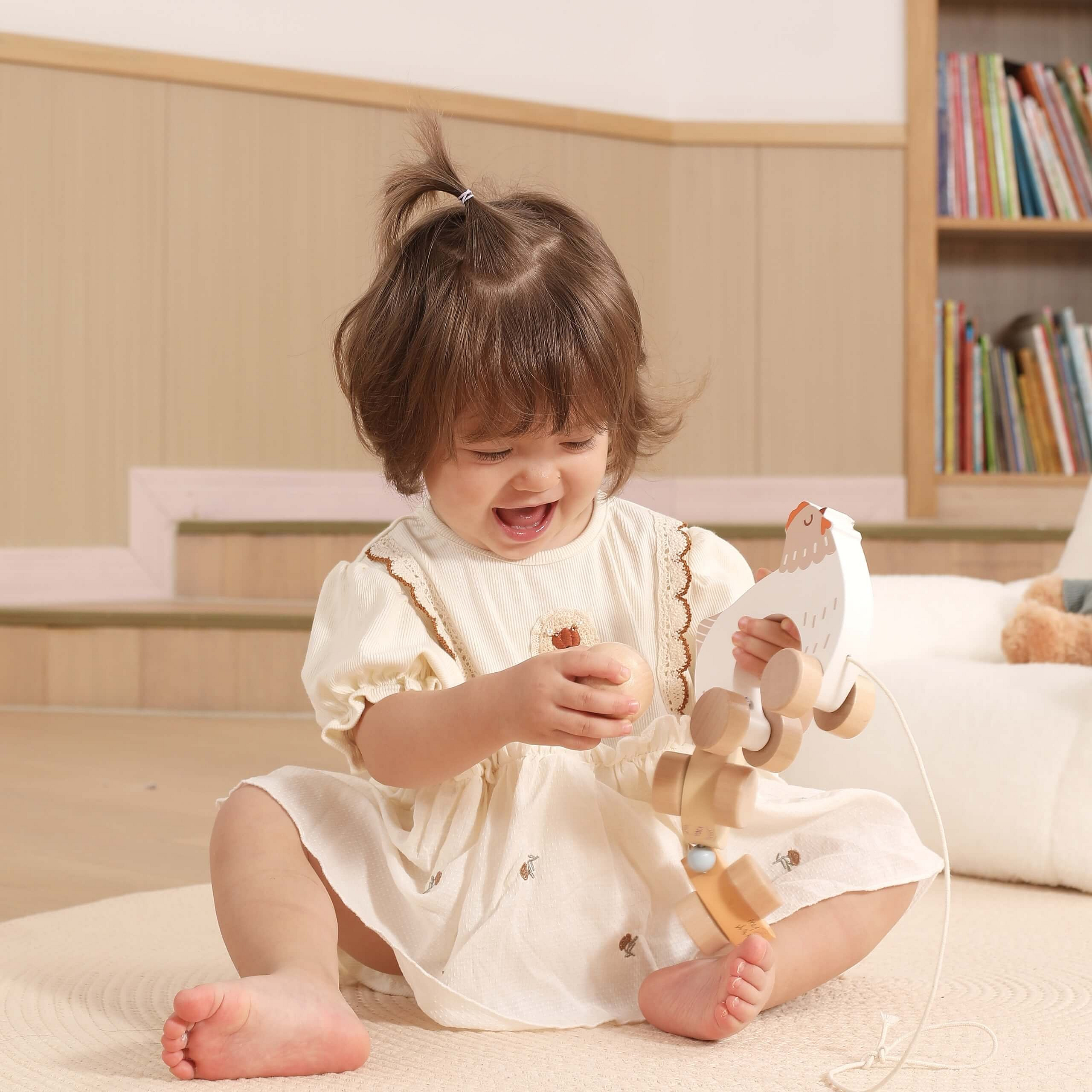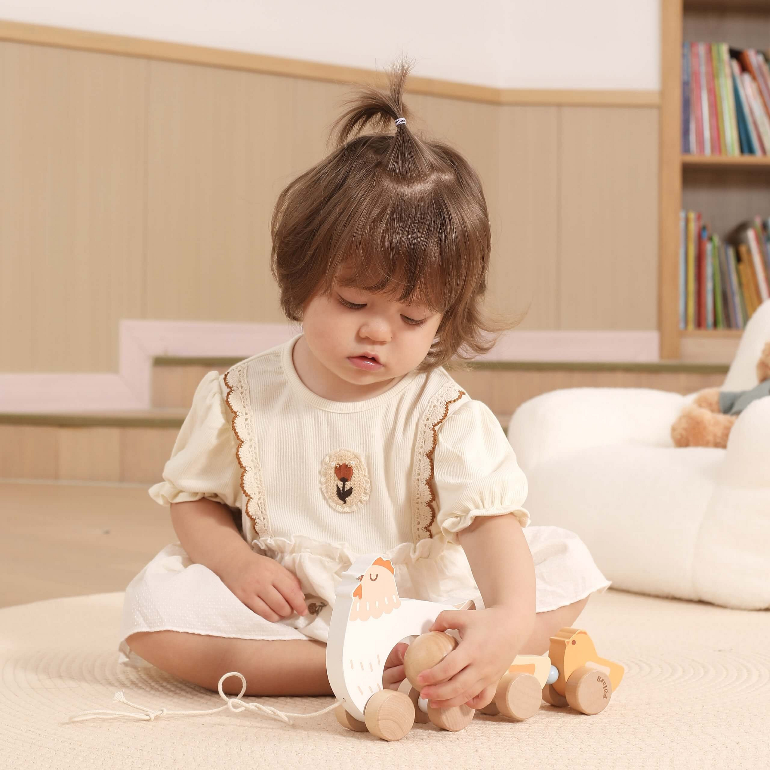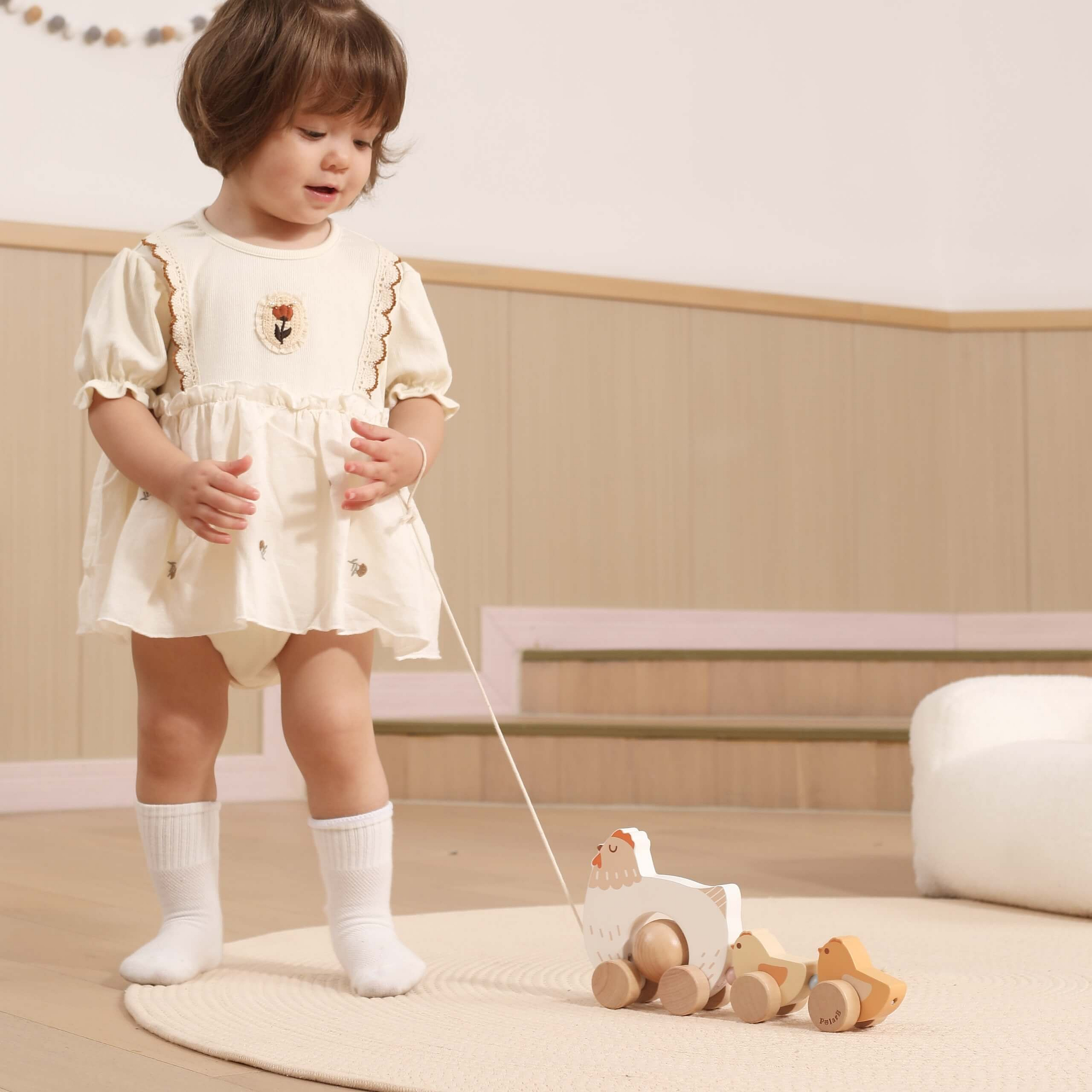 ✔️ Kołyszące się pisklęta – poruszają się podczas ciągnięcia zabawki