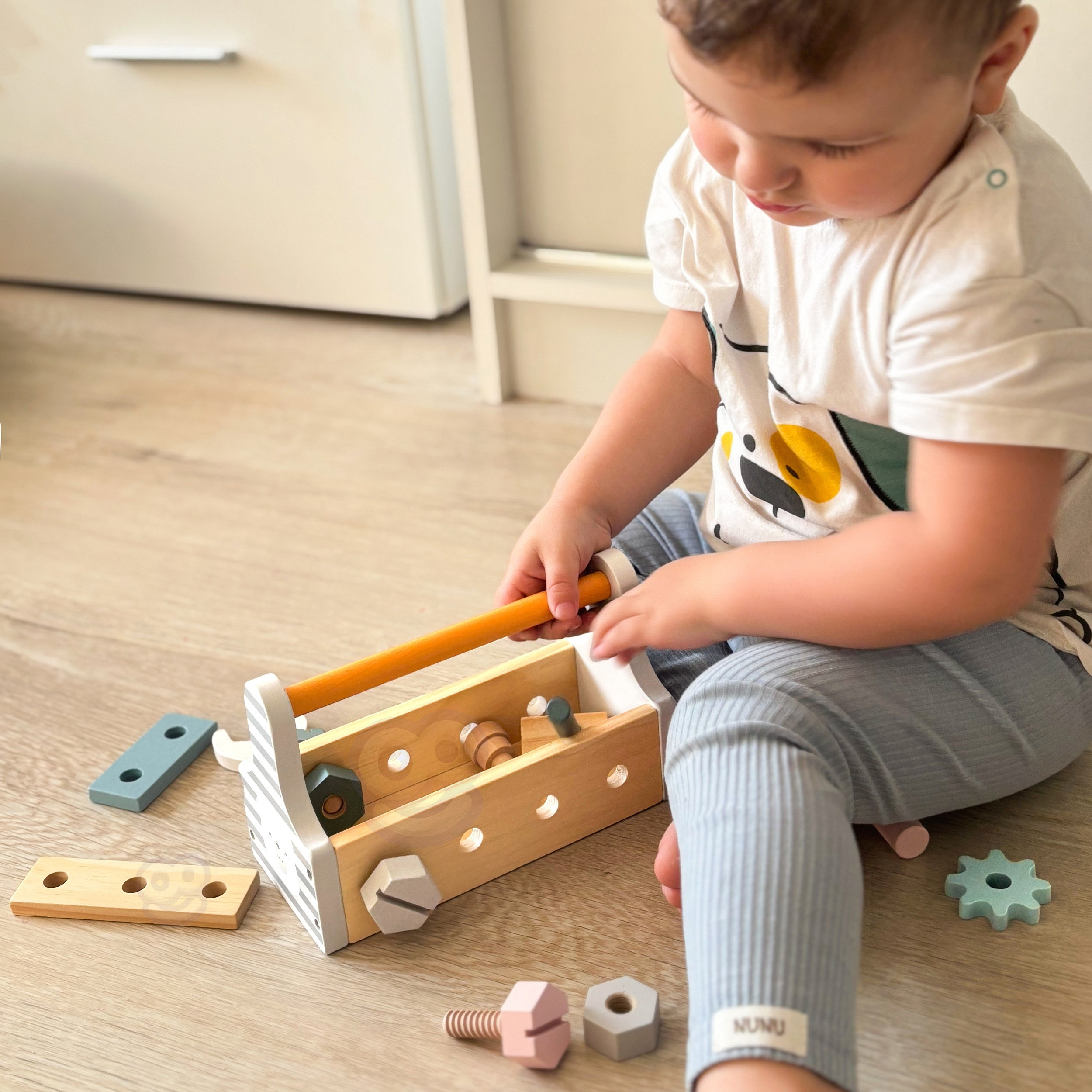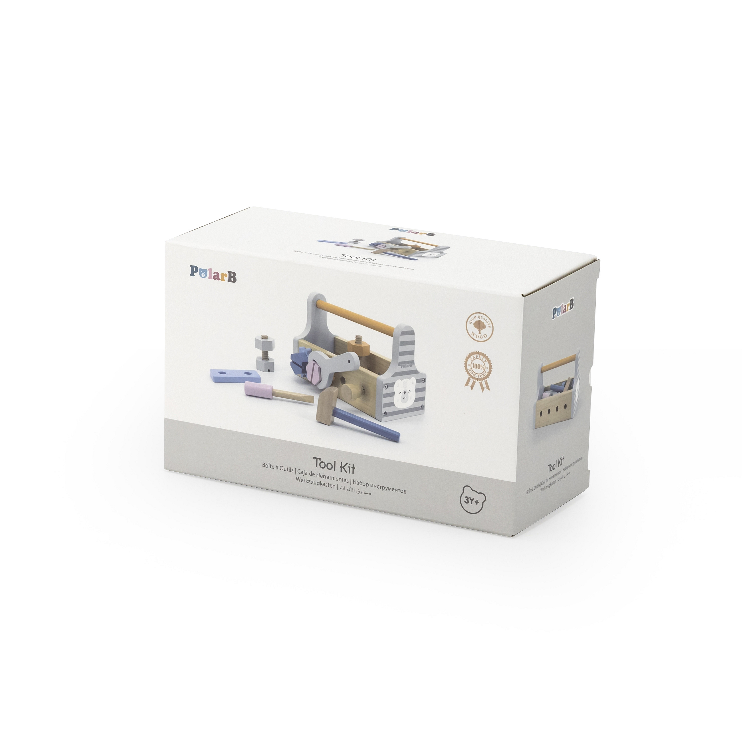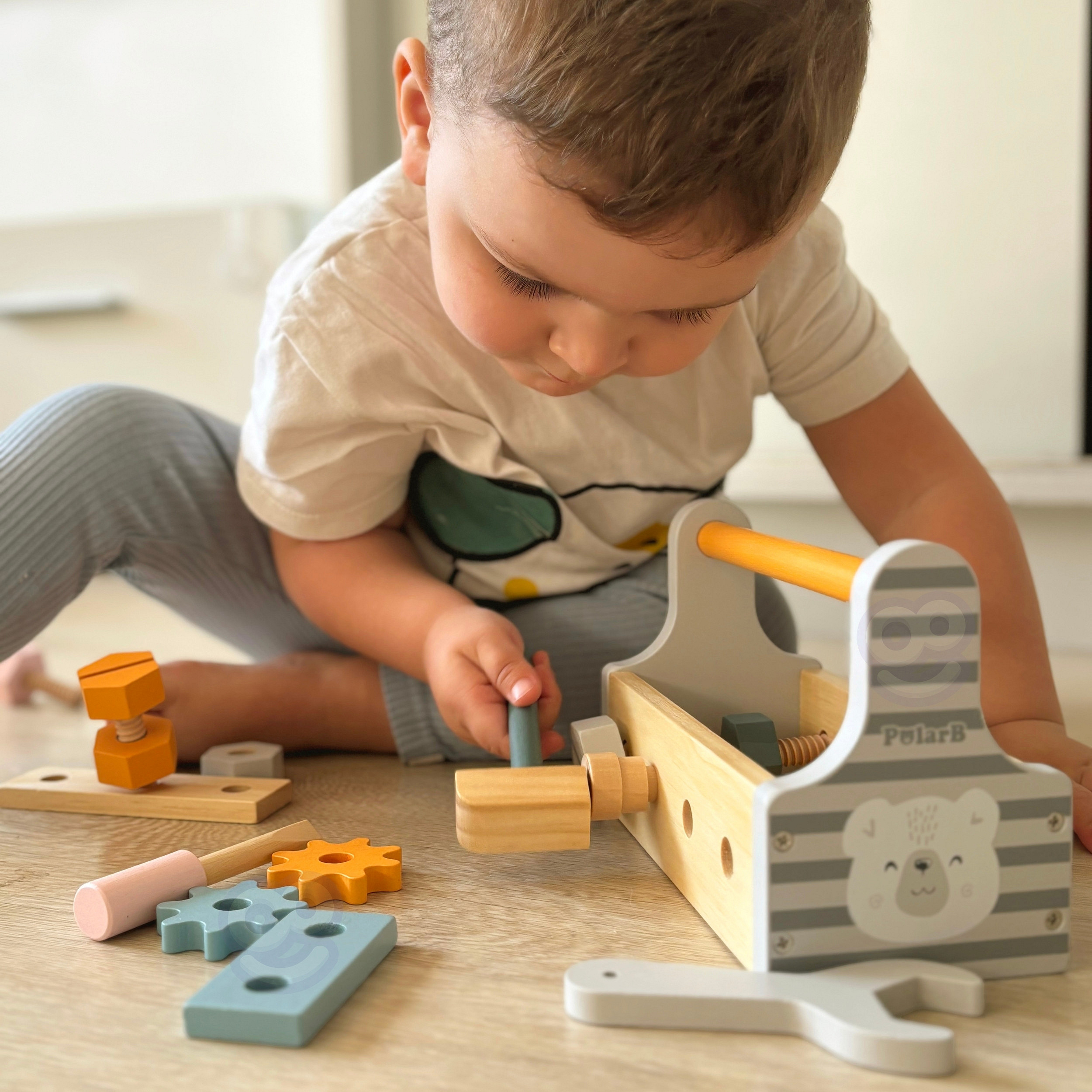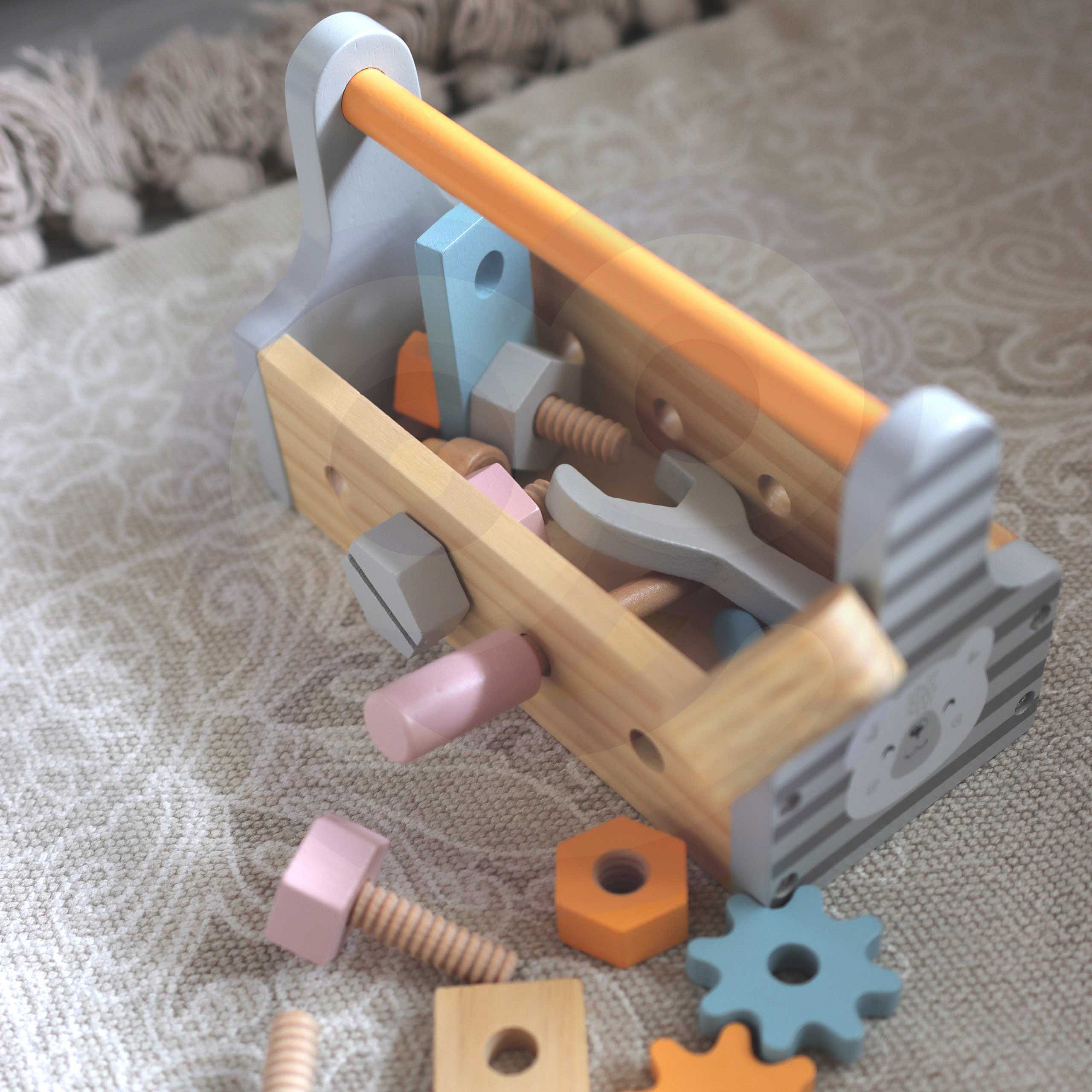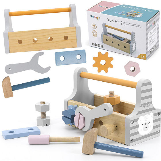 Zestaw drewnianych narzędzi marki Viga z serii Polar Bear – zestaw narzędzi z motywem niedźwiedzia polarnego z pewnością przypadnie do gustu małym rzemieślnikom.