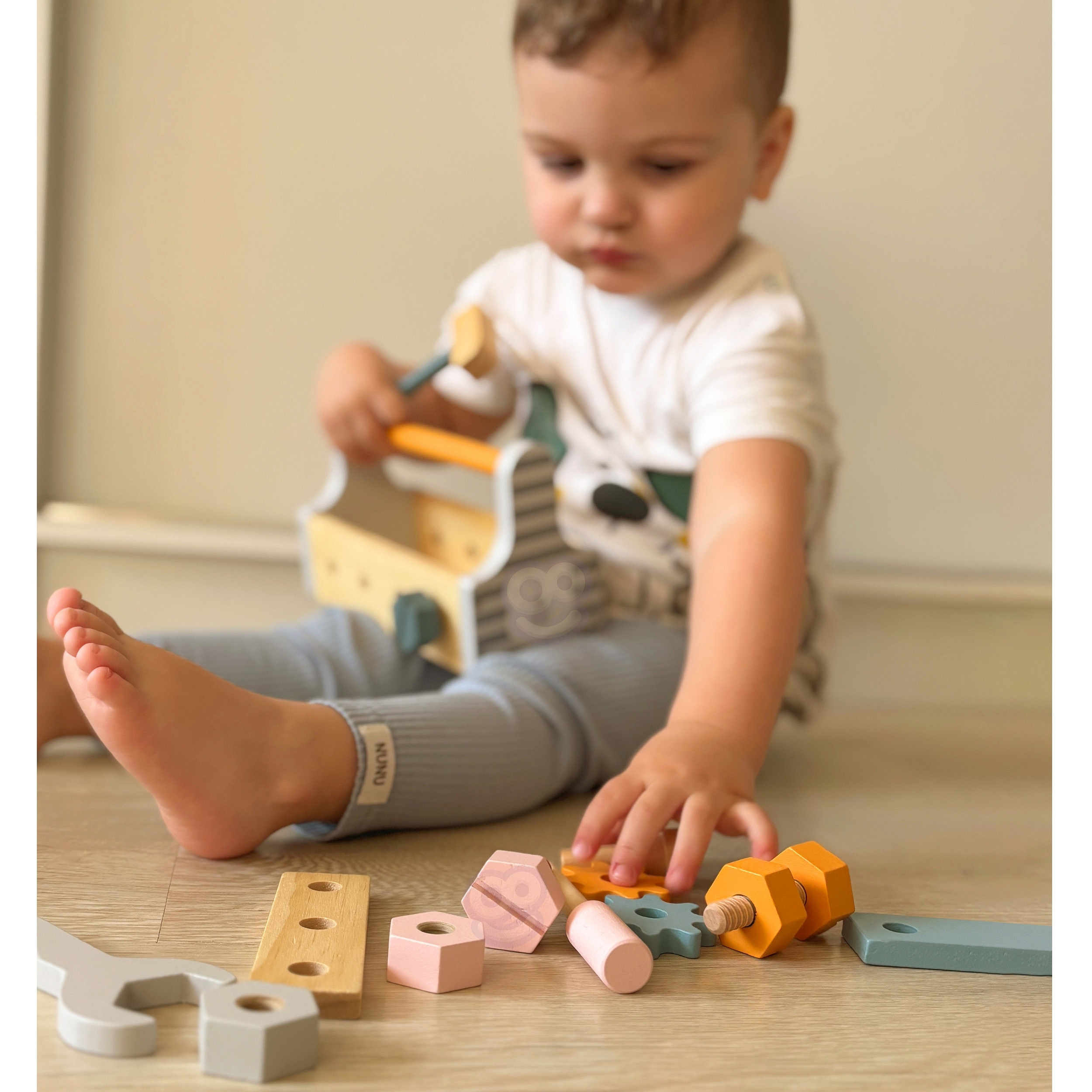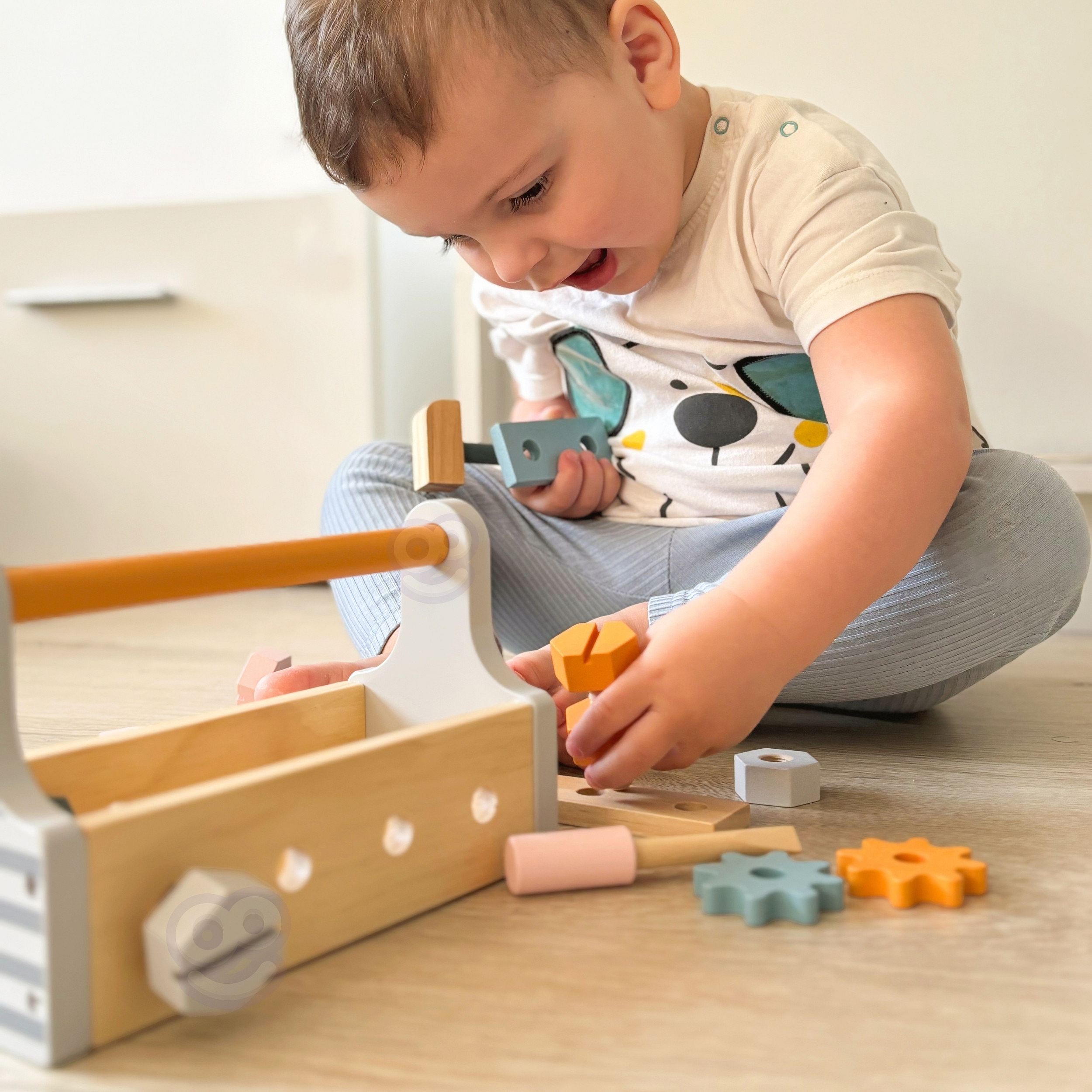 - - poręczna skrzynka z narzędziami zadowoli każdego małego majsterkowicza, który pomaga tacie i dziadkowi w pracach domowych,