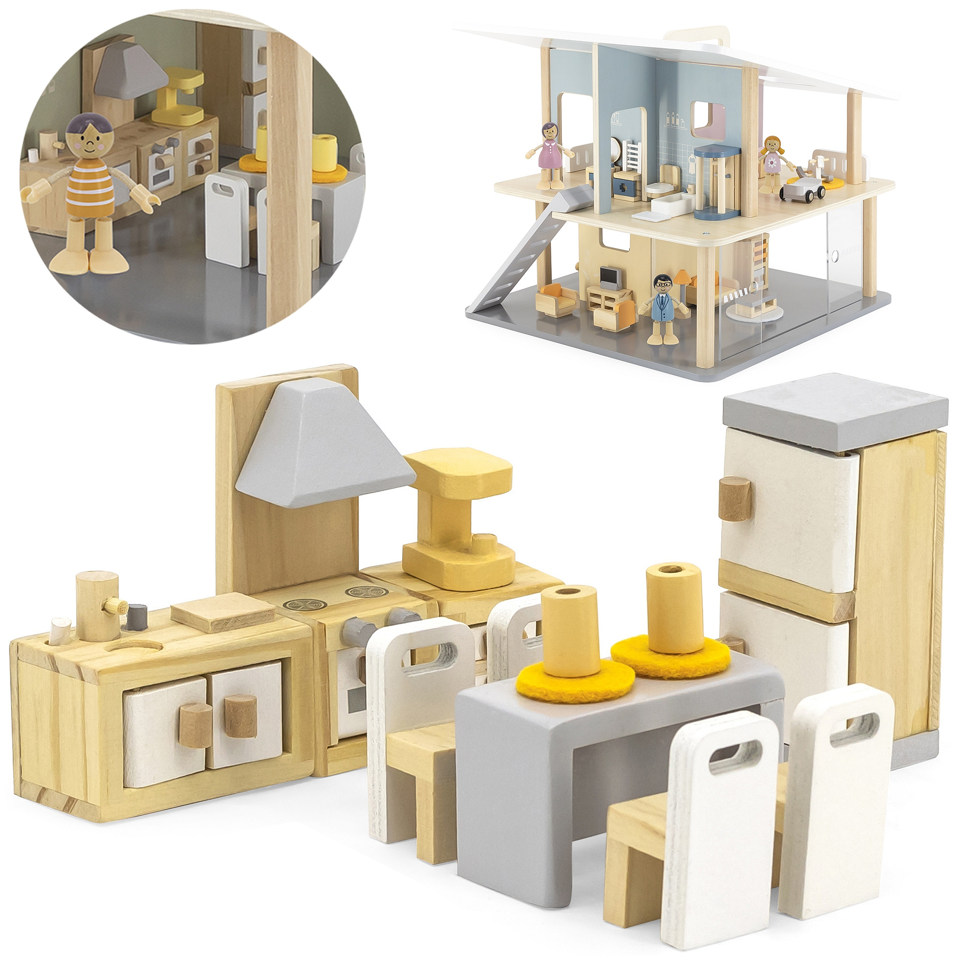 Seria zestawu mebelków dla lalek od renomowanej firmy Viga to idealny prezent dla twojego dziecka. Seria zawiera 5 różnych pomieszczeń w innych kolorystykach. Stwórz swój własny domek dla lalek i układaj meble oraz pomieszczenia wedle własnego uznania. Produkt wykonany jest z wysokiej jakości materiału oraz z dużą dbałością o szczegóły. Zabawka pomalowana jest nietoksycznymi farbami w łagodnej kolorystyce.