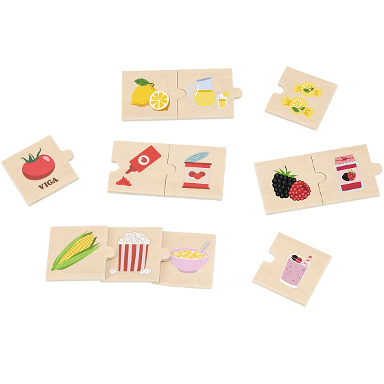 VIGA Zestaw Puzzli Odkrywaj Związki Między Naturą a Jedzeniem uczy dzieci w zabawny sposób, jak produkty roślinne są przetwarzane na pyszne produkty spożywcze. Dopasowując rośliny i zbiory do produktów, takich jak popcorn, płatki zbożowe, masło orzechowe czy makaron, maluchy odkrywają, skąd pochodzą te codzienne przysmaki. Tego rodzaju zabawa rozwija zrozumienie procesów związanych z produkcją żywności i zachęca do poznawania etapów przetwarzania plonów.