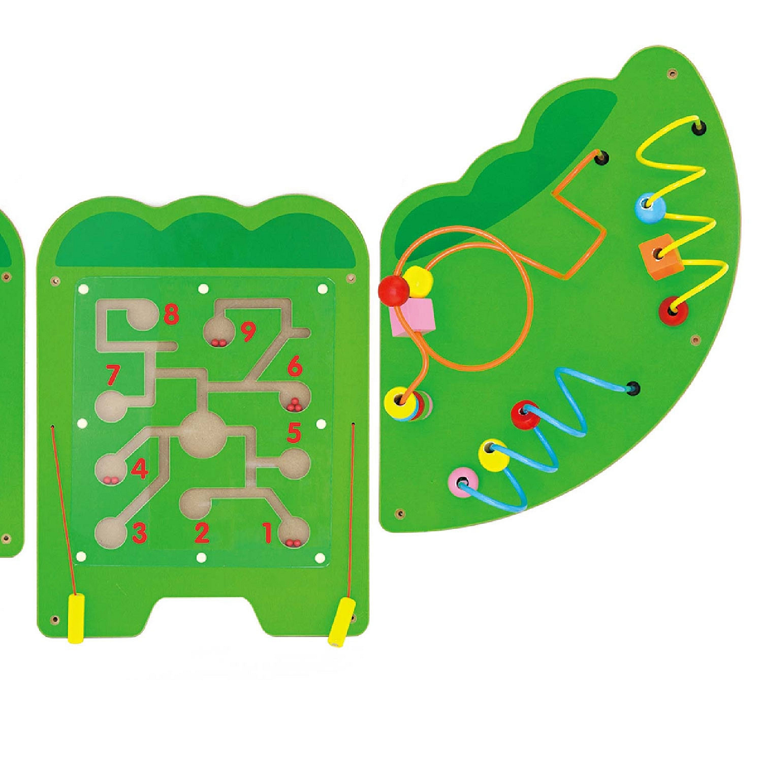 Druga plansza zawiera labirynt w kształcie koła. Wewnątrz labiryntu znajduje się metalowa kuleczka. Zadaniem dziecka jest obracanie kołem tak, by doprowadzić kulkę do odpowiedniego punktu. Dziecko nie tylko będzie się świetnie bawiło, ale również ćwiczyło swoją koncentrację, uwagę oraz analityczne, logiczne myślenie.