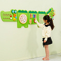 Pierwszy element, to głowa krokodyla. Tutaj maluch znajdzie labirynty przez które może prowadzić umieszczone elementy ćwicząc sprawność ruchową rączek i paluszków. Dodatkowo znajdziemy tu koła zębate, które wprowadzą w ruch oczy naszego krokodyla! Koła można dowolnie przekładać, szukając nowych możliwości rozmieszczenia.