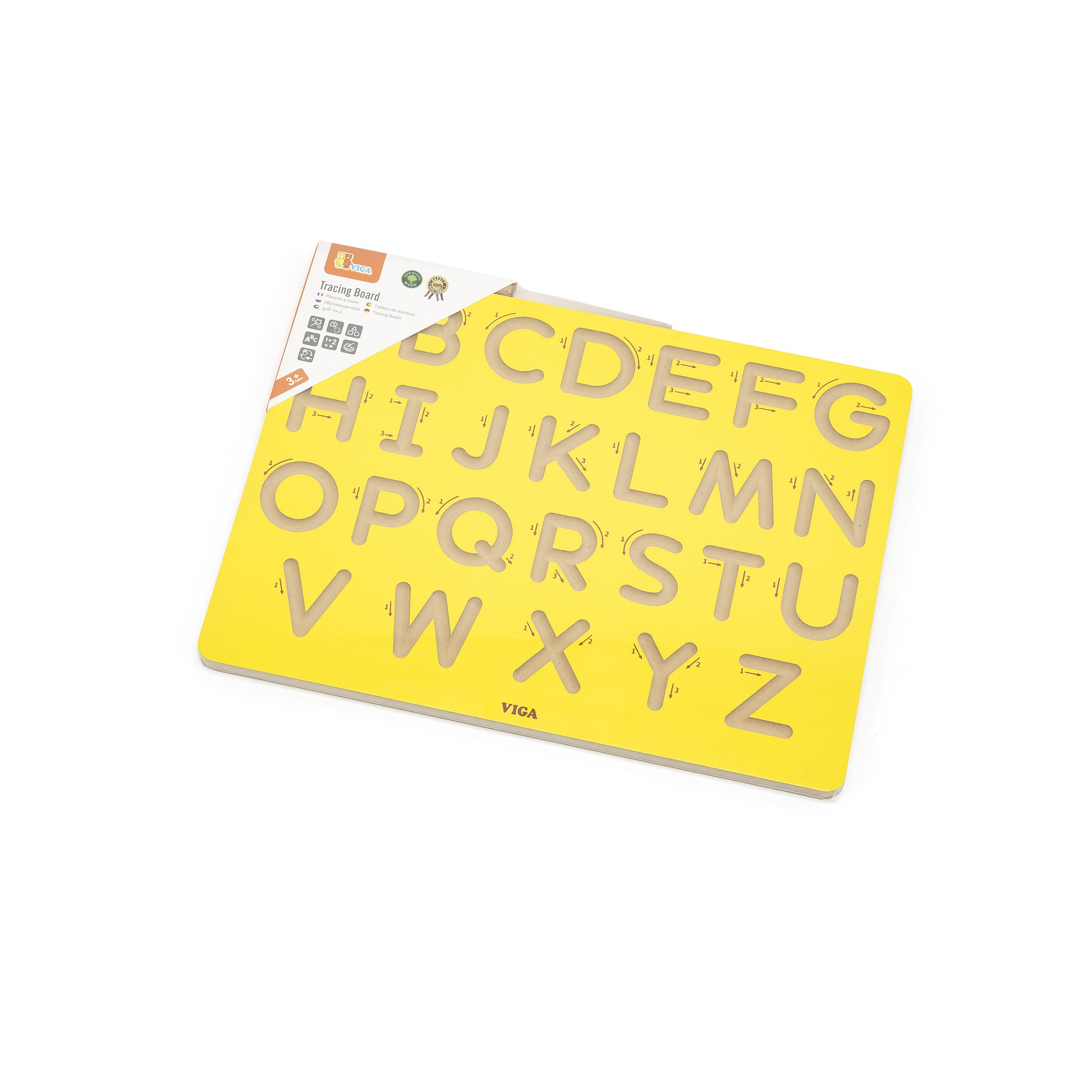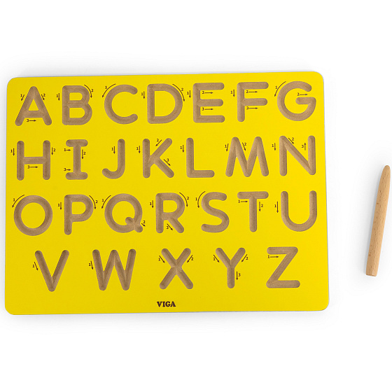 Tablica kreślarska od marki VIGA to idealna propozycja dla dzieci do trenowania rączki przed nauką pisania. Delikatnie wygrawerowane i zakrzywione rowki sprawiają, że idealnie nadaje się dla dzieci do kontrolowania ruchu dłoni i kształtowania pamięci mięśniowej poprzez wielokrotne śledzenie. Każda litera jest oznaczona strzałkami, co pomaga dzieciom w prawidłowej kolejności pisania. Tablica jest dostępna w kompaktowych rozmiarach, dzięki czemu dzieci mogą ją trzymać i używać na stole lub biurku.Dziecko poprzez zabawę uczy się ruchów odpowiedzialnych w przyszłości za rysowanie i pisanie, kształci płynność ruchów oraz ćwiczy koordynację wzrokowo - ruchową.