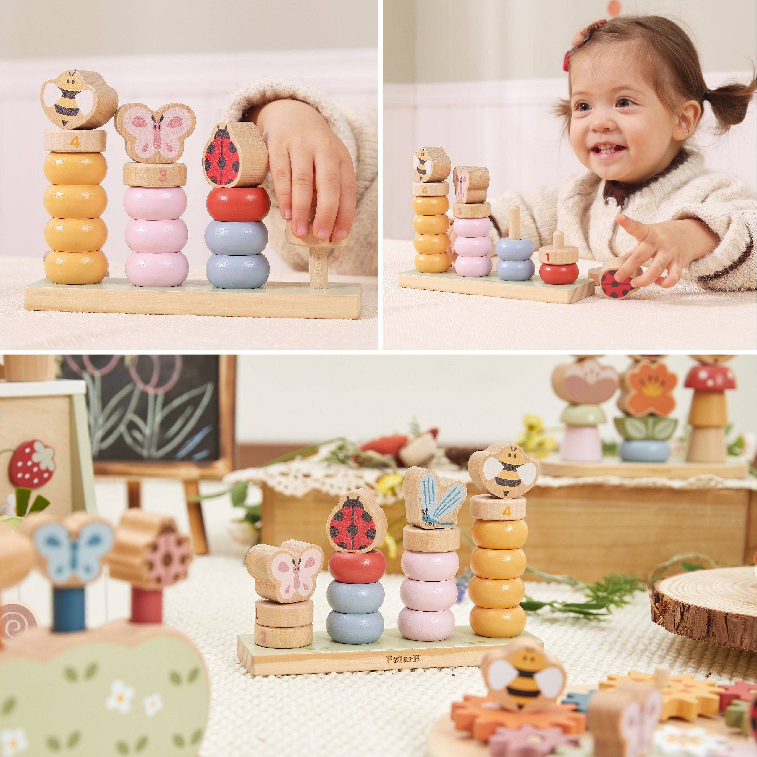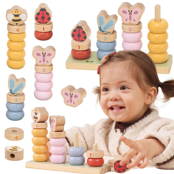 Drewniana układanka Wiosenna Nauka Liczenia od marki Viga, to radosna zabawa, która w naturalny sposób wprowadza dziecko w świat liczenia i logicznego myślenia. Kolorowe elementy z motywami sympatycznych owadów zachęcają malucha do układania, sortowania i eksperymentowania. Zabawa polega na nakładaniu elementów na trzpienie, dopasowywaniu kolorów, rozmiarów oraz liczb. Dzięki temu dziecko uczy się poprzez działanie, w swoim tempie. To idealne połączenie nauki, rozwoju i świetnej zabawy w domu, przedszkolu czy żłobku.