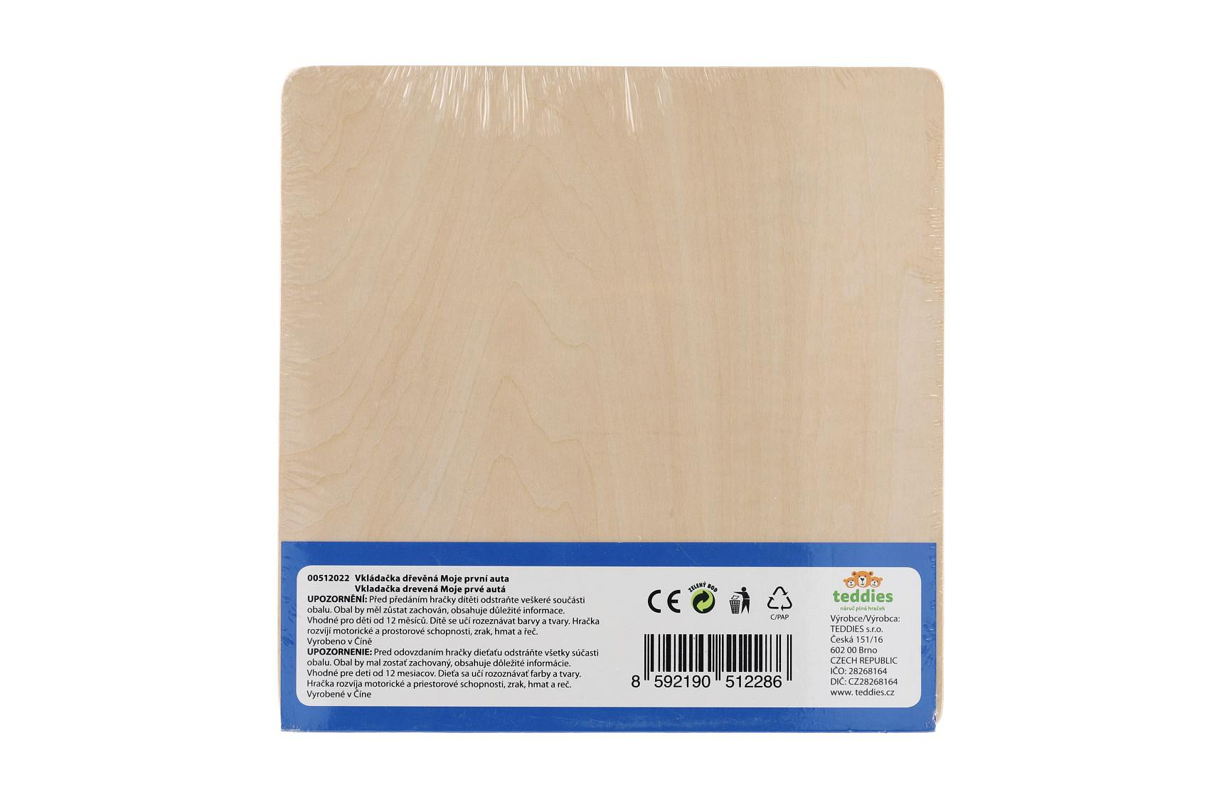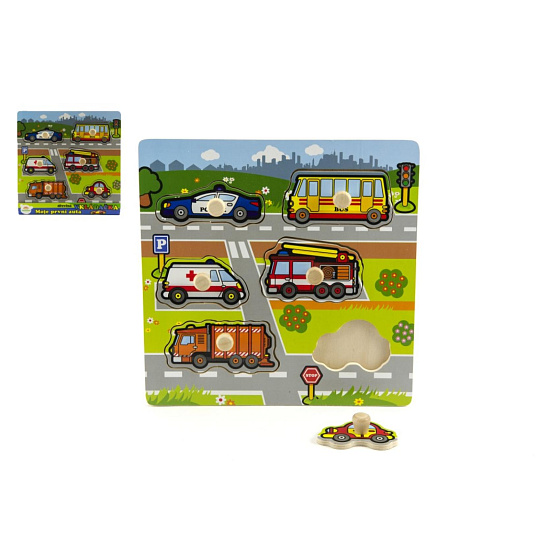 Vkládačka Moje první auta dřevo 6ks 22,5x22,5x2,5 cm 12m+ MPZ