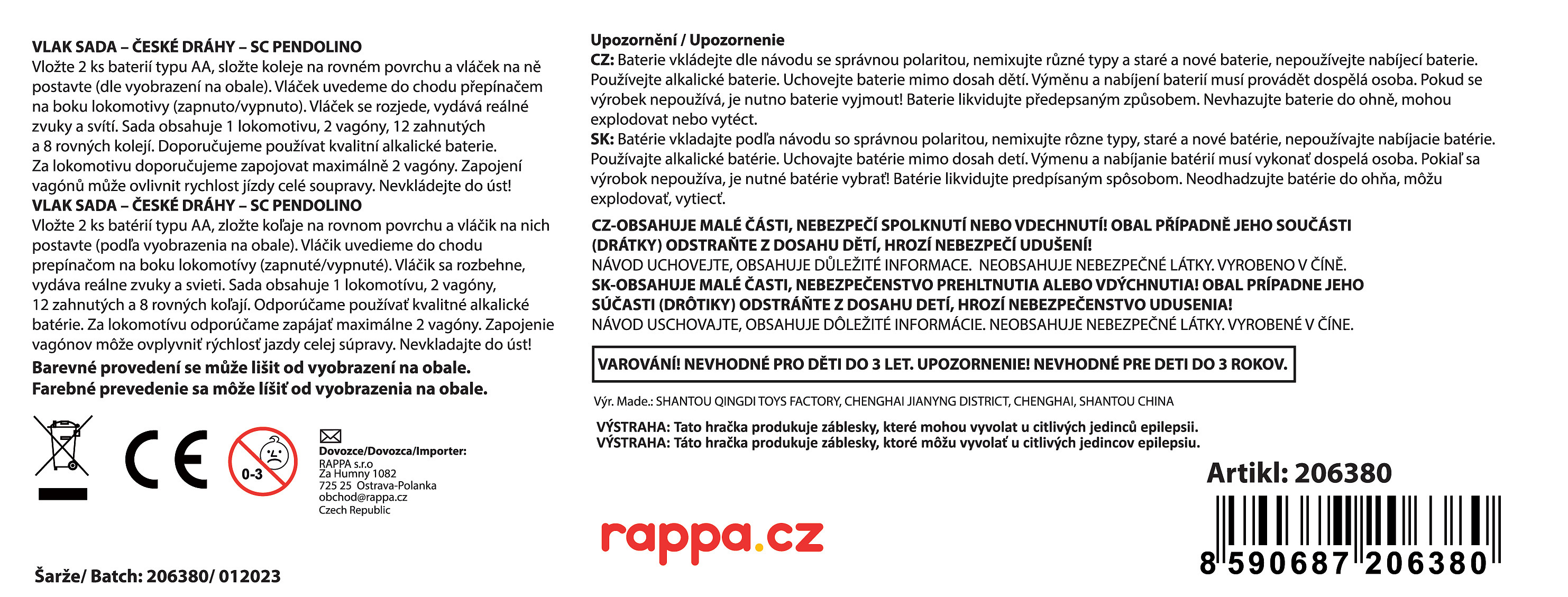 Sada z kolekce Naše železnice obsahuje lokomotivu s pohonem, vagón, zadní lokomotivu, 12 zahnutých a 8 rovných kolejí. Koleje a výhybky je možné dokoupit samostatně. Vytvoř obrovské kolejiště a přidej další vlaky ze stejné kolekce. Lokomotiva jezdí, vydává zvuk a svítí. Vagón měří 30 cm a lokomotiva 26 cm. Celková dráha kolejí měří 4,8 m. 2 ks AA baterií nejsou součástí balení. Vhodné pro nadšence vlaků a železnice.