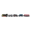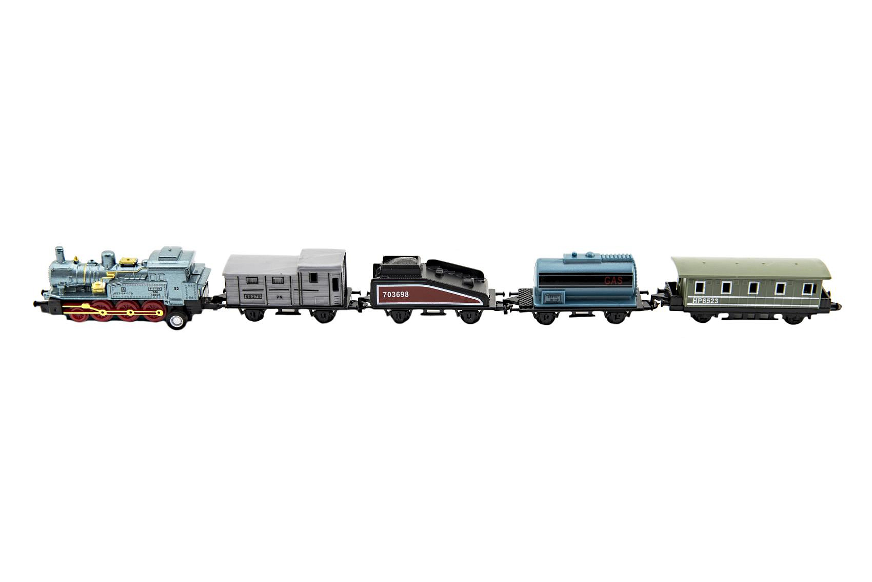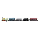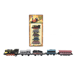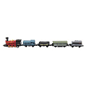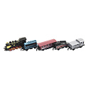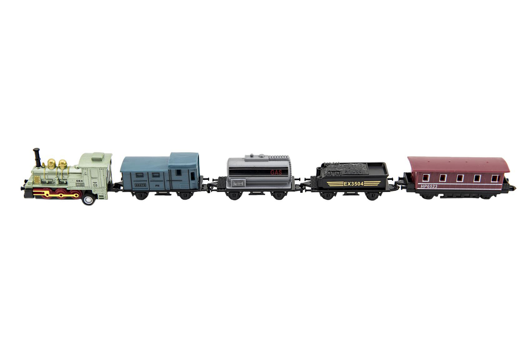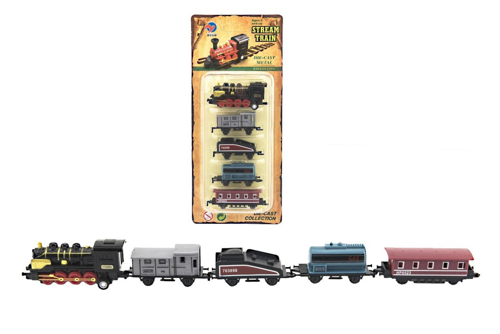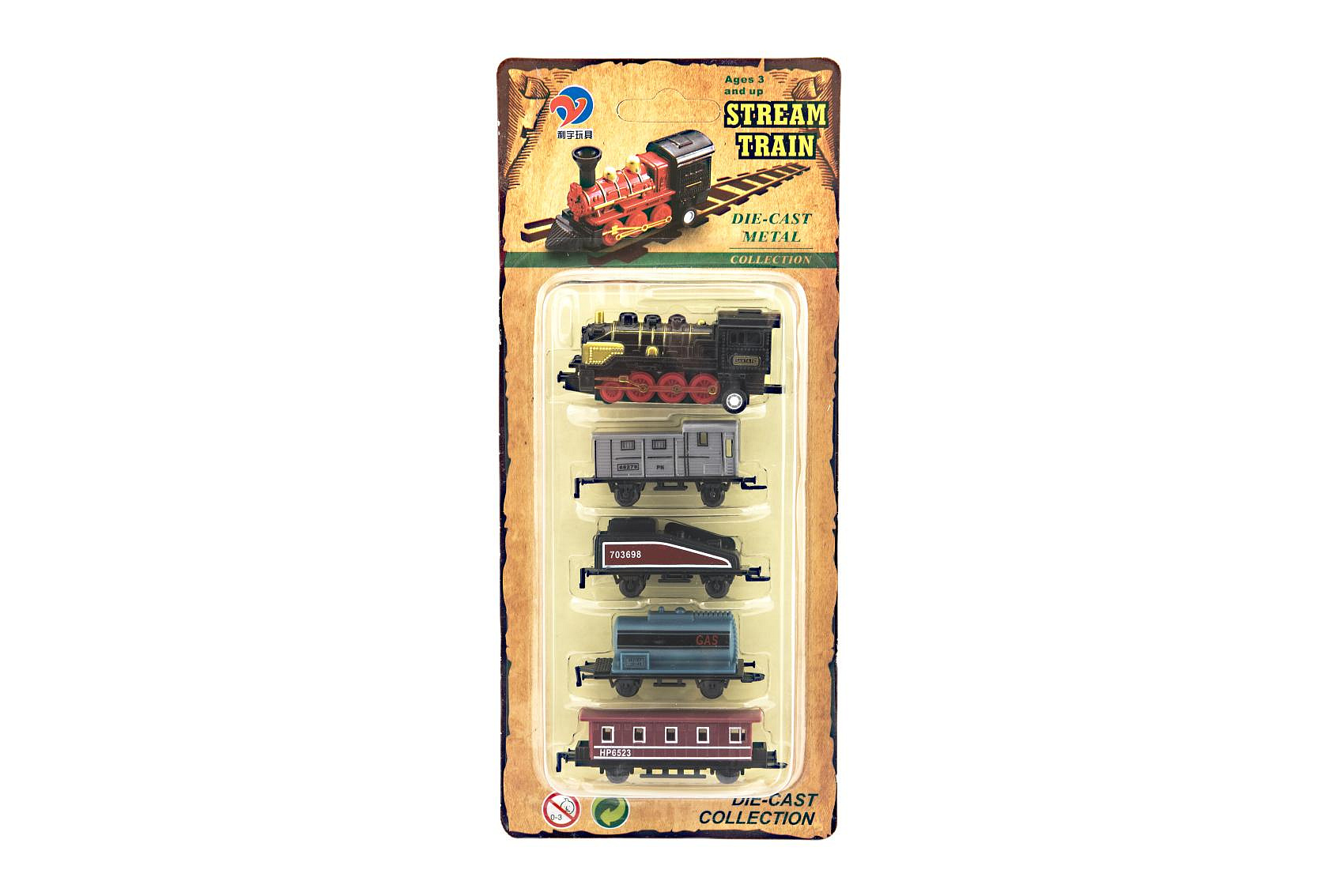 Vlak/lokomotiva a vagóny 5ks kov/plast 8cm na zpětné natažení 4 druhy na kartě
