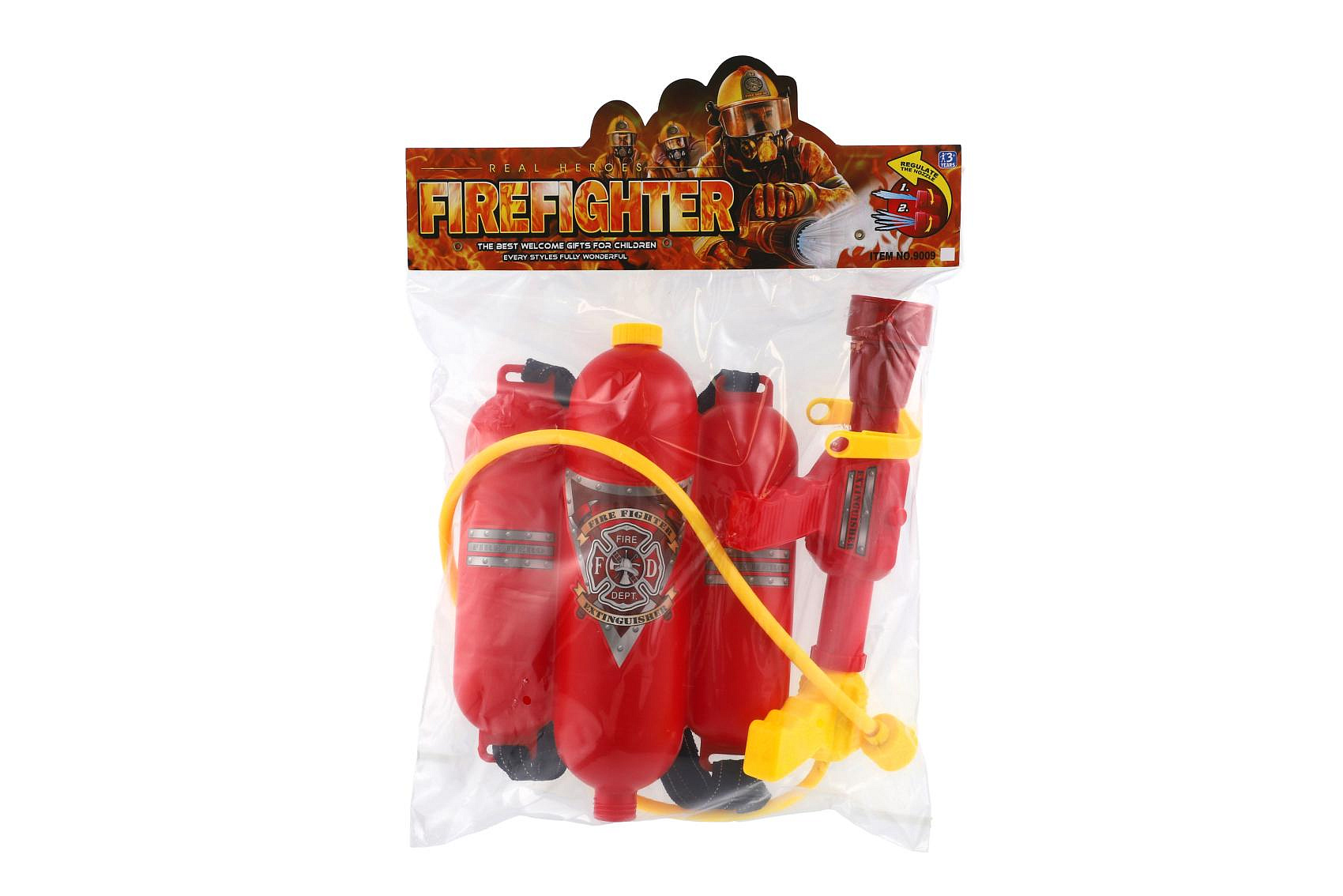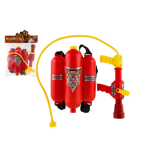 Vodní pistole hasičská se zásobníkem na záda plast v sáčku 34x48x7cm