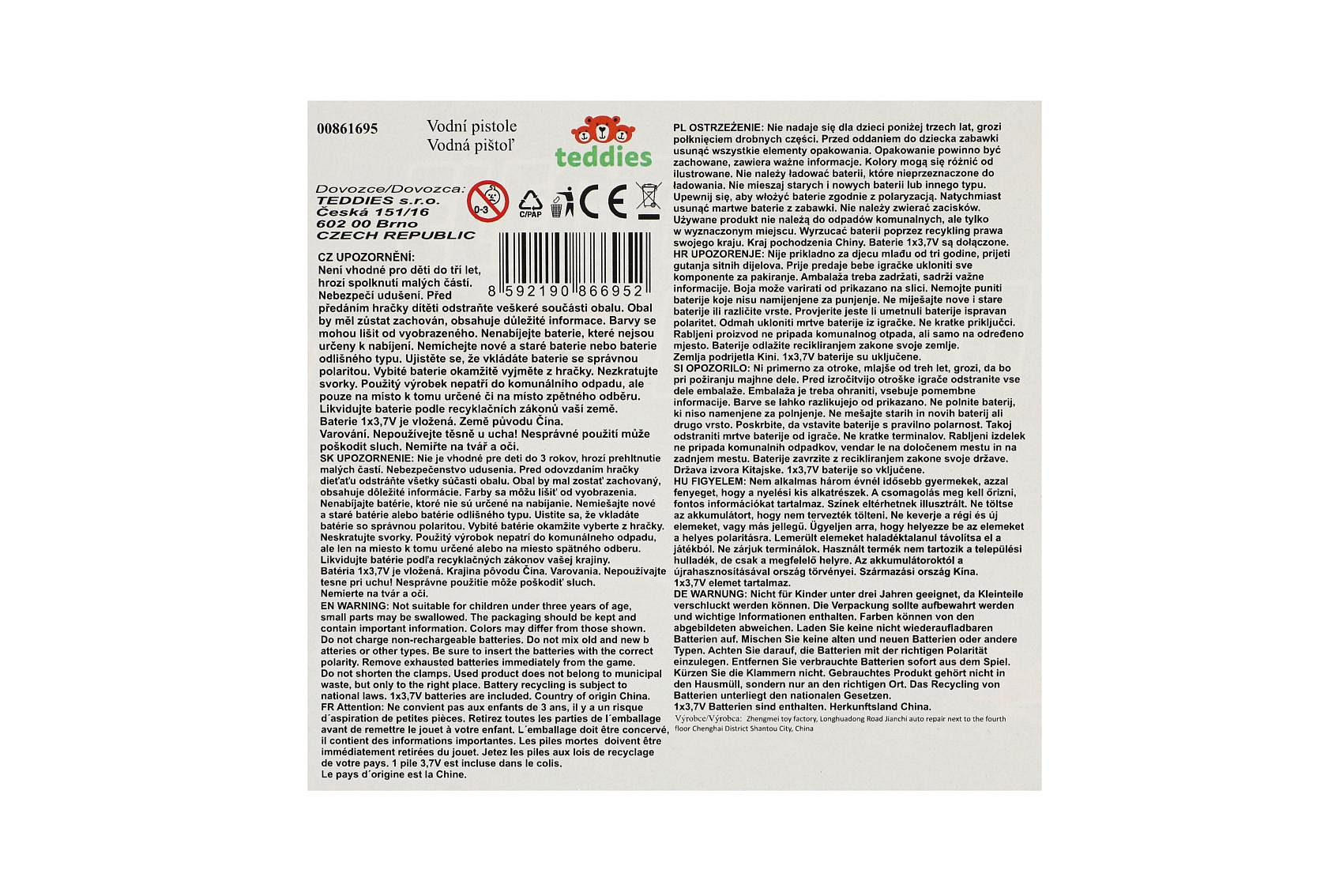 Vodní pistole plast 40cm na baterie se zvukem v krabici 43x22x8cm