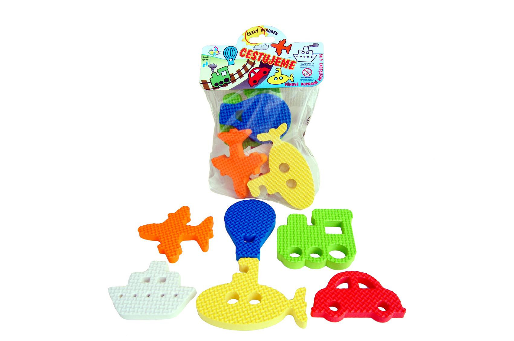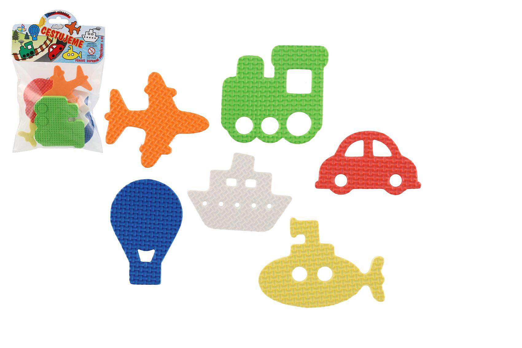 Vodolepky Pěnové dílky cestujeme 6ks v sáčku 14x21cm