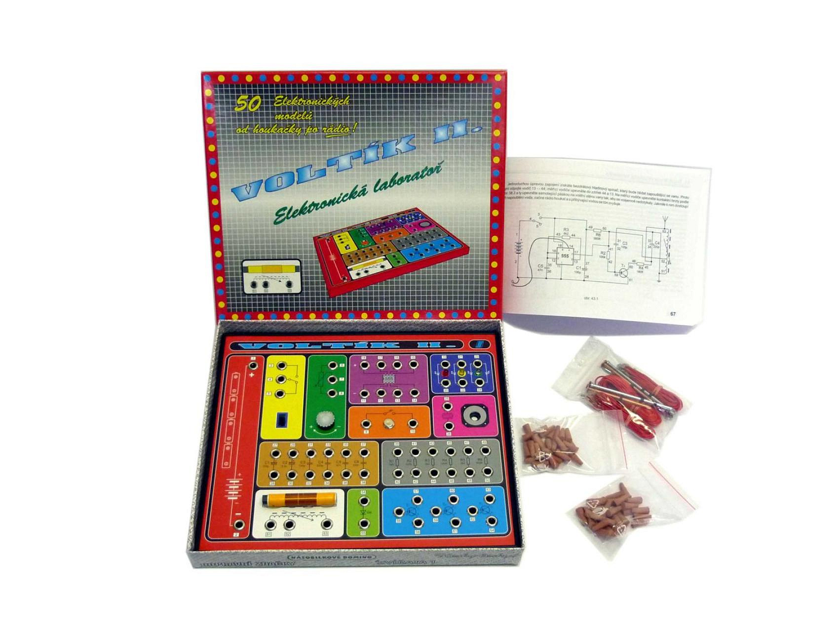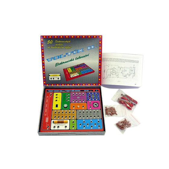 Stavebnice VOLTÍK II. je tvůrčí hračka pro děti od 10 let s mnoha možnostmi zapojení efektních elektronických modelů podle příručky nebo také podle svých znalostí. Stavebnice obsahuje vše pro stavbu 50 elektronických modelů bez pájení. Například lze sestavit rozmanité houkačky, polní telefon, krystalku, jednoduché RÁDIO, detektor kovů, metronom, blikač, poplašné zařízení na fotobuňku, minutník, měřič stisku a také modely propojené s Voltíkem I. Na jednoduchých schématech je rovněž možné vyzkoušet si základní vlastnosti elektronických součástek. Vložit baterie 4xAA.