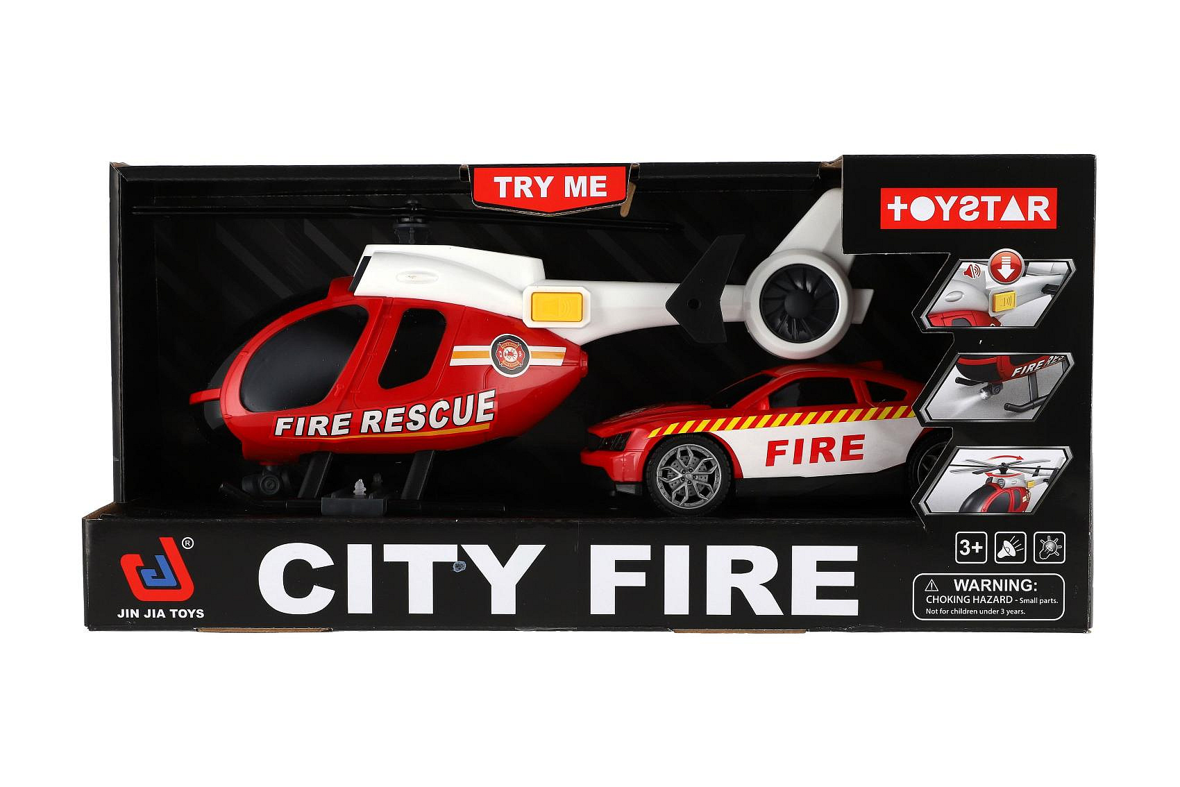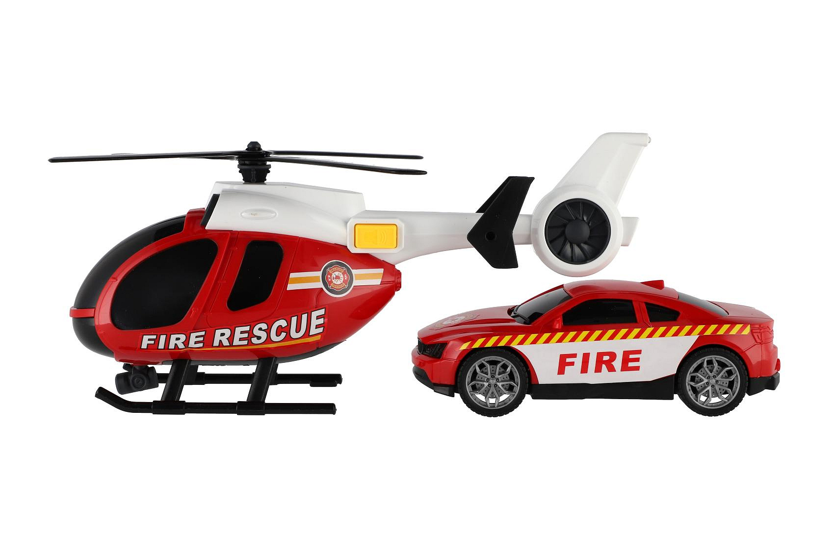 Popis Vrtulník,auto hasiči plast na baterie se světlem se zvukem v krabici 37x17,5x12cm