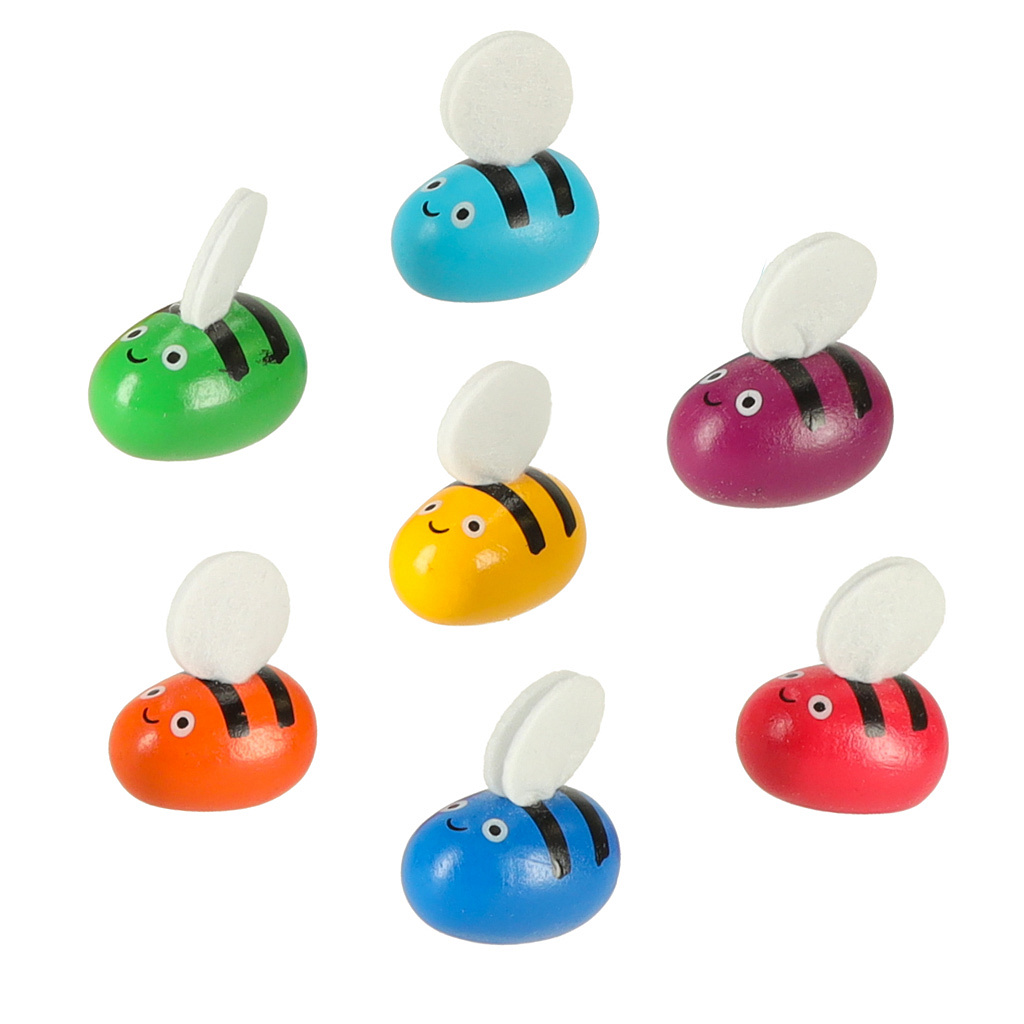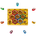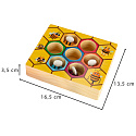 W zestawie 7 pszczółek – każda w innym kolorze oraz plansza/podstawa wykonana z litego kawałka drewna. Na podstawie zabawny obrazek z motywem plastra miodu.