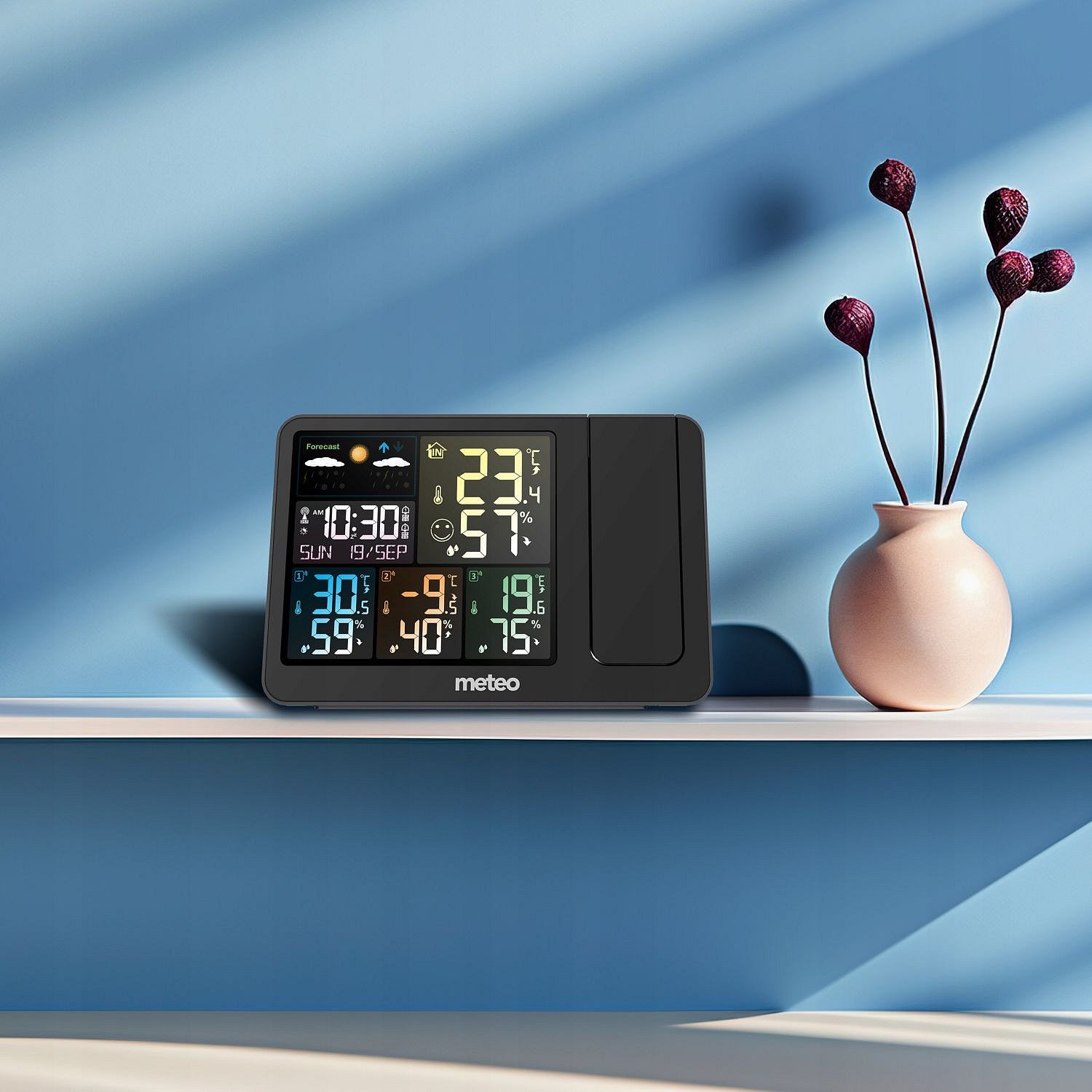 An external sensor placed anywhere, wirelessly sends current information about the temperature and humidity to our station. Its range is up to 60m - it will work well in a large house. The sensor also has a display on which we can see temperature and air humidity.