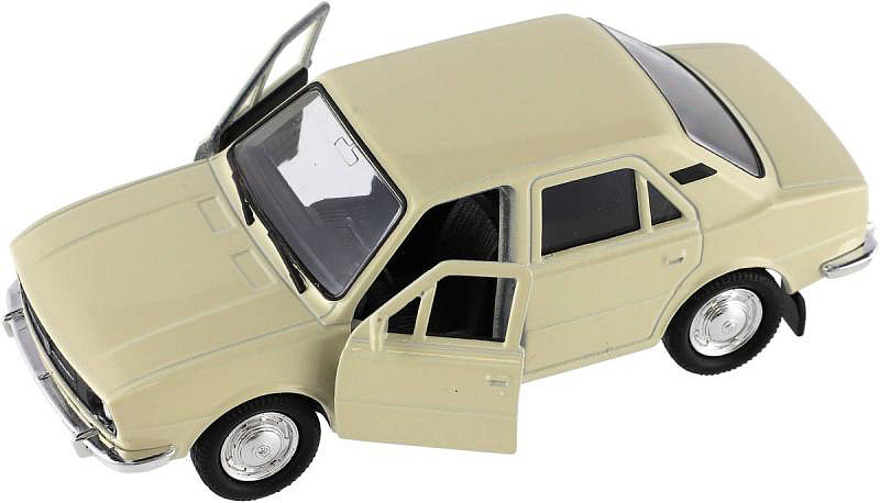 Model osobního auta s otevíracími dveřmi a kufrem, připraven k přidání do Vaší sbírky. Auto je stříkané originálním autolakem. Luxusní vůz je vyroben z kovu a má plastové doplňky. Vozidlo je věrnou kopií reálných aut značky Škoda 105L. Rozměr krabice: 15 x 7 x 7 cm Vhodné od 3 let