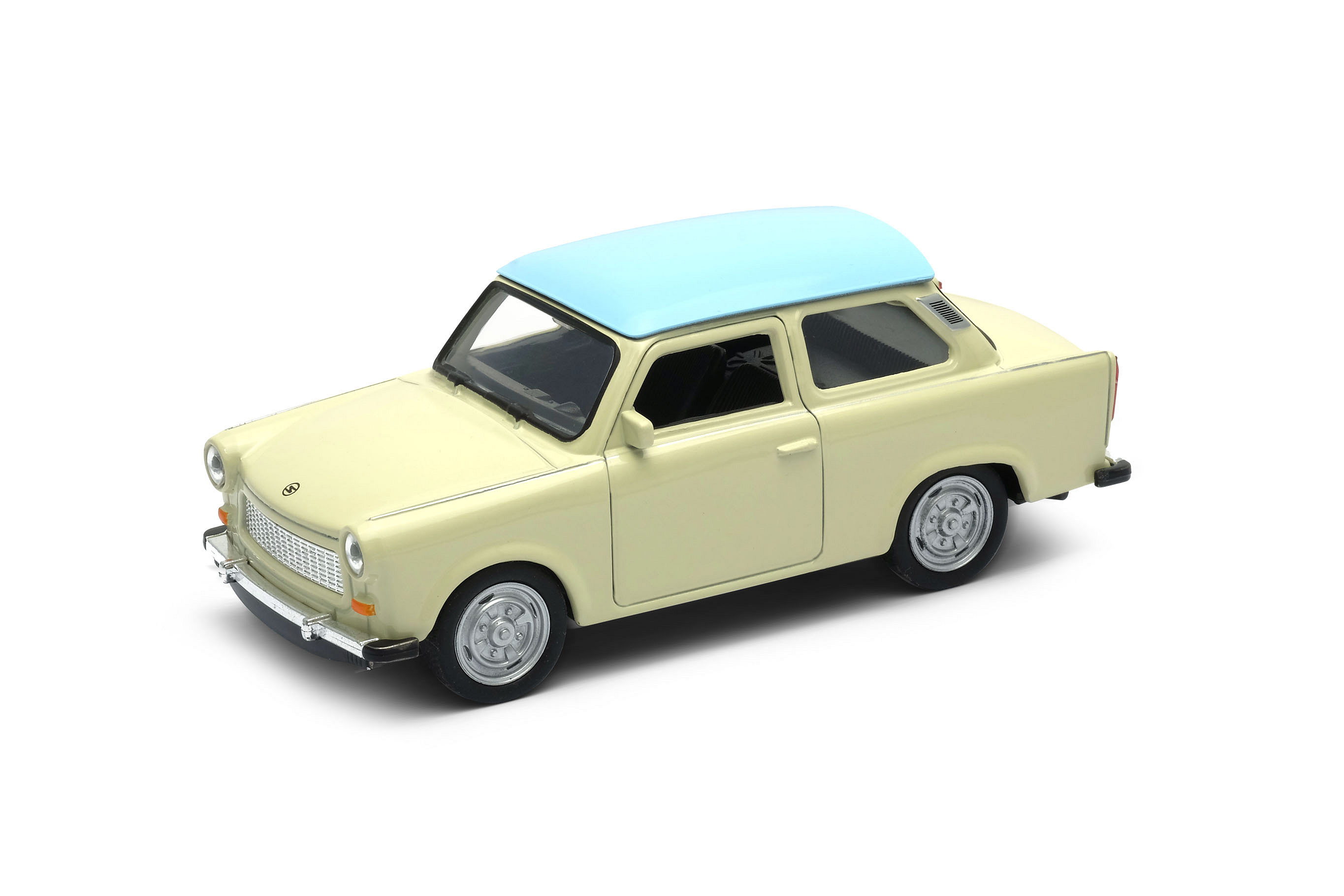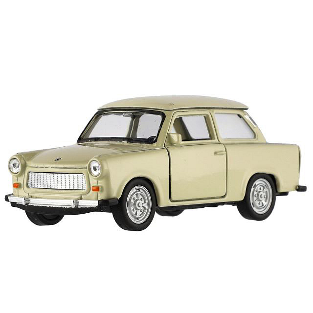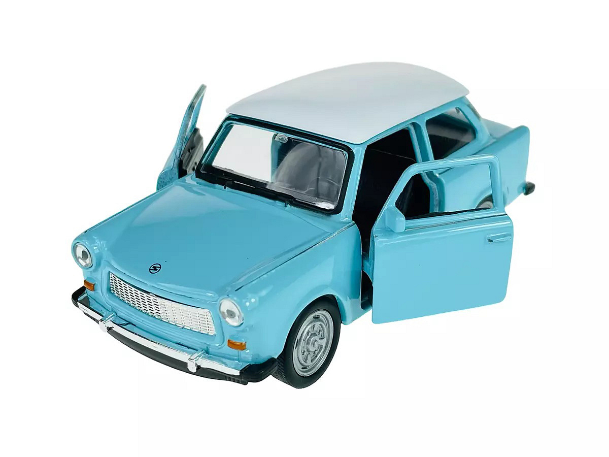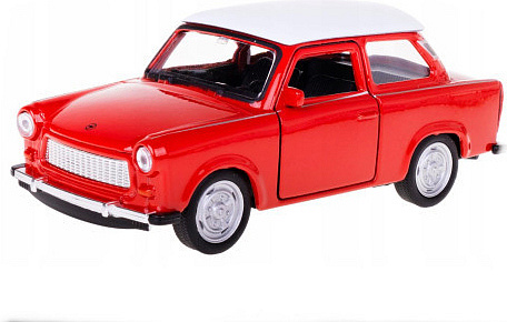 Model osobního auta na volný chod s otevíracími dveřmi. Vůz je v měřítku 1:34 a je vyrobeno z kovu s plastovými doplňky. Vozidlo je věrnou kopií reálných aut Trabant. Rozměr: 11 cm Rozměr krabičky: 15 x 7 x 7 cm Vhodné od 3 let
