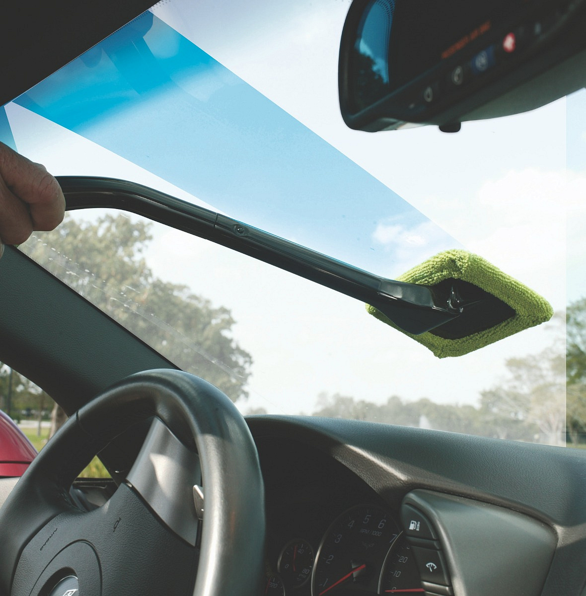 The ultimate way to clean your windscreen quickly and easily. You no longer need chemical cleaning products, chamois, paper towels, aerosols or soap, because this handy cleaning tool works with regular tap water, which is very environmentally friendly. The Windshield Wonder cleans hard-to-reach corners without any effort. There is a microfibre cleaning cloth on its rotating head, which you can use to clean every corner of your windshield. This way you or your co-driver can clean the windscreen, side and rear windows quickly and efficiently before or while driving. Also ideal for condensation and fogged windows. The compact design makes it easy to store in the glove compartment.