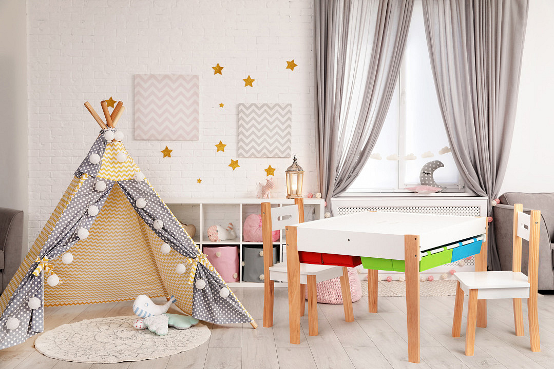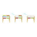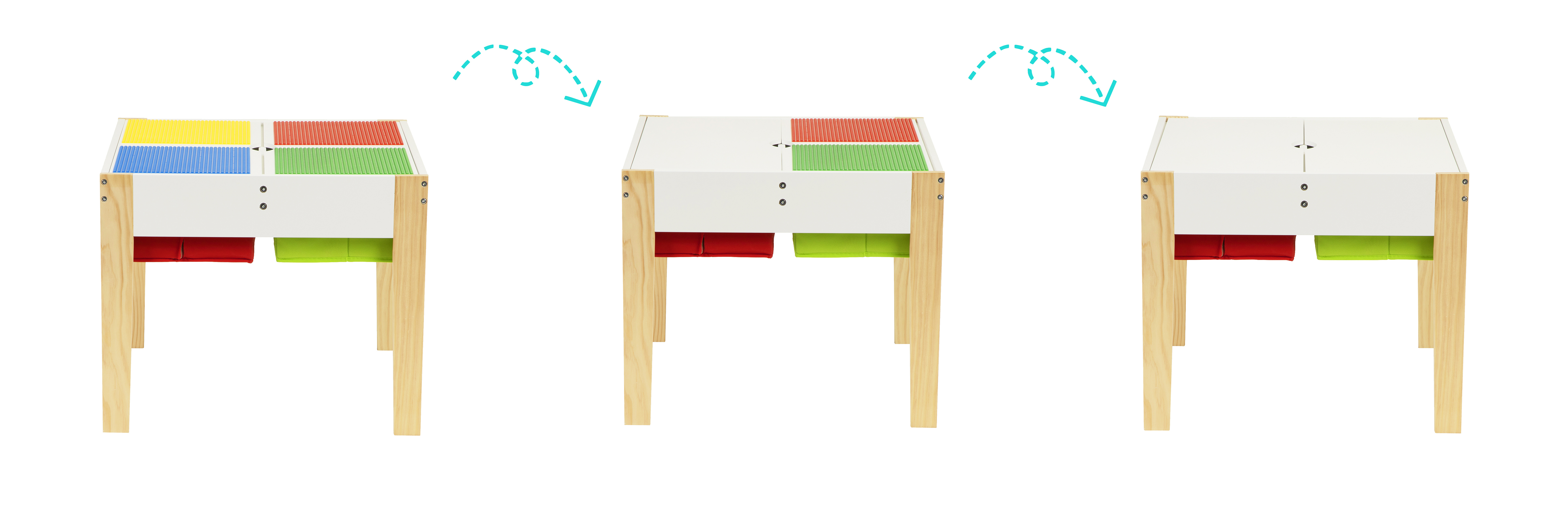 Thanks to the ability to rotate the tabletops, the table can be perfectly adapted to play, if one child wants to draw and the other to arrange blocks, just turn one of the table top elements.