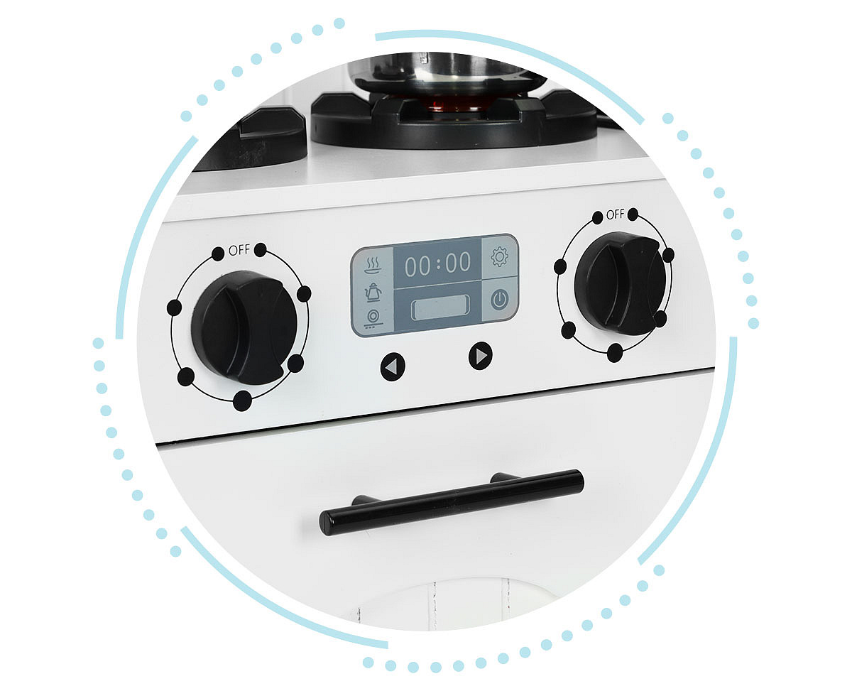 The kitchen is equipped with rotary knobs that allow you to simulate the operation of the stove and oven. Children can regulate the temperature, change the burner settings which allows them to create different scenarios and toy dishes, without the risk of burning. This is a great opportunity for creative play and experimenting in a safe environment.