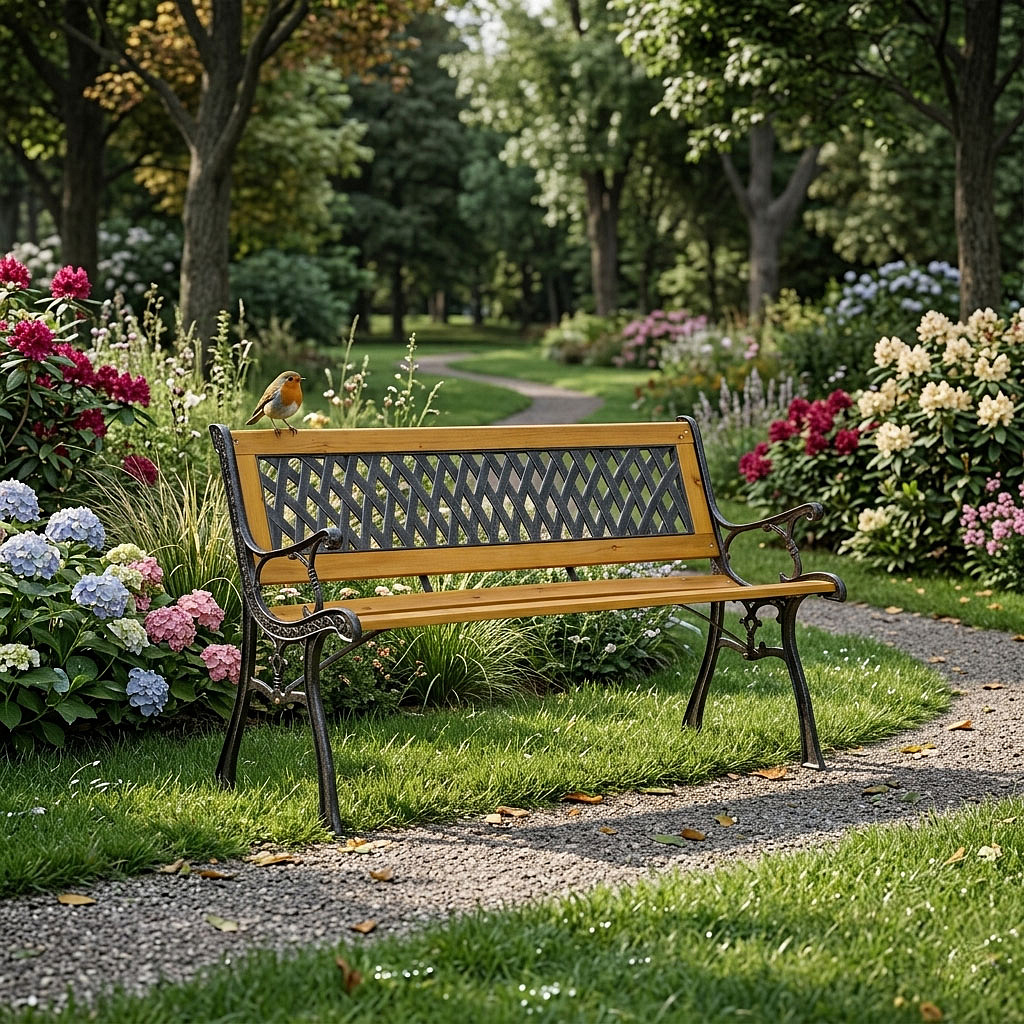 The classic form of the bench allows it to fit easily into various arrangements – from traditional gardens to modern terraces and balconies. The subtle openwork pattern gives it lightness while maintaining a timeless character. Thanks to its universal appearance, it provides a cohesive addition to any space, regardless of the surrounding style.
