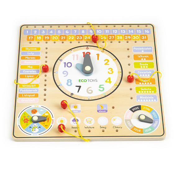 The board will allow children to learn the days of the week, months, seasons, and teach them how to read the time correctly. In addition to learning, the toy will bring a lot of joy and develop the child's manual skills.