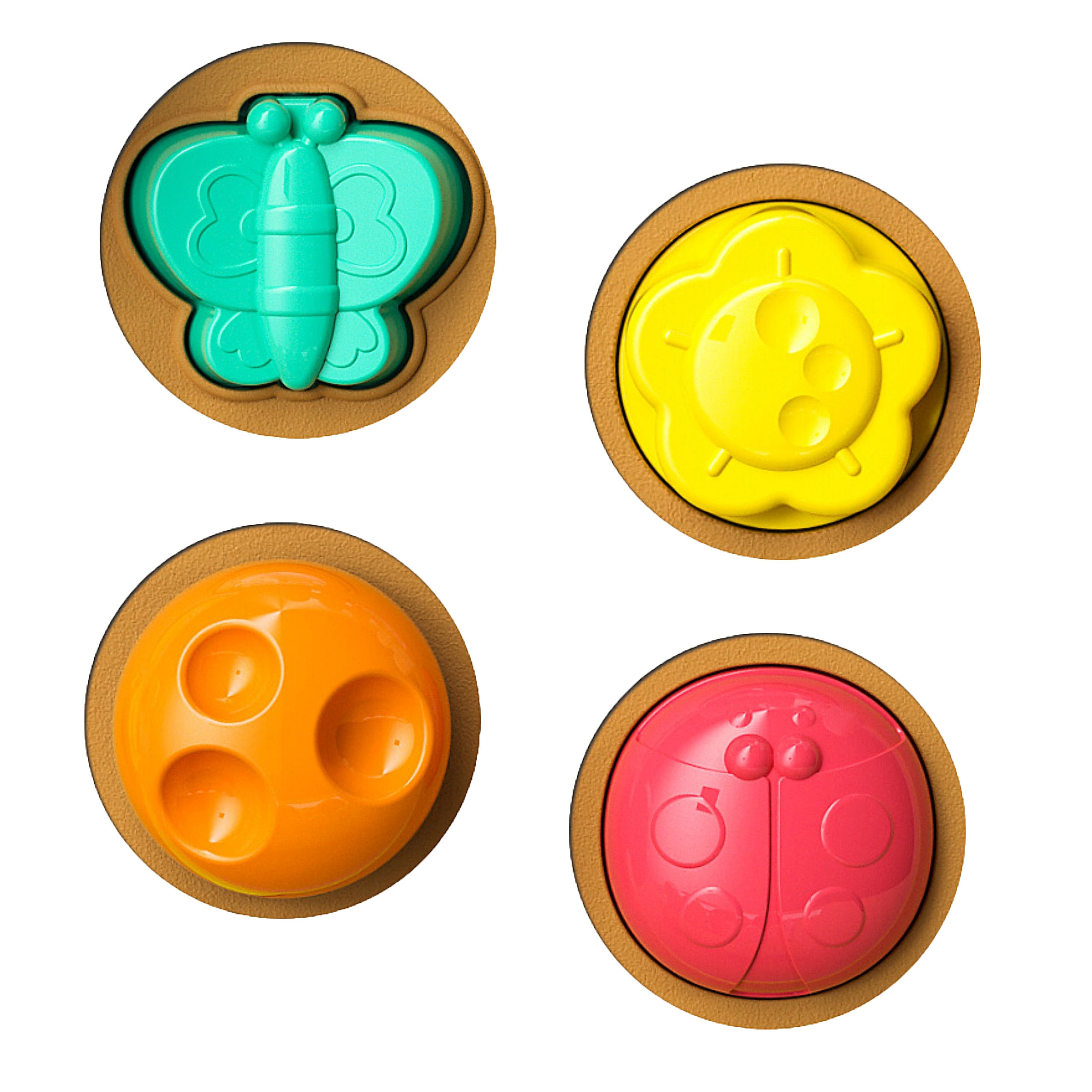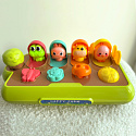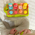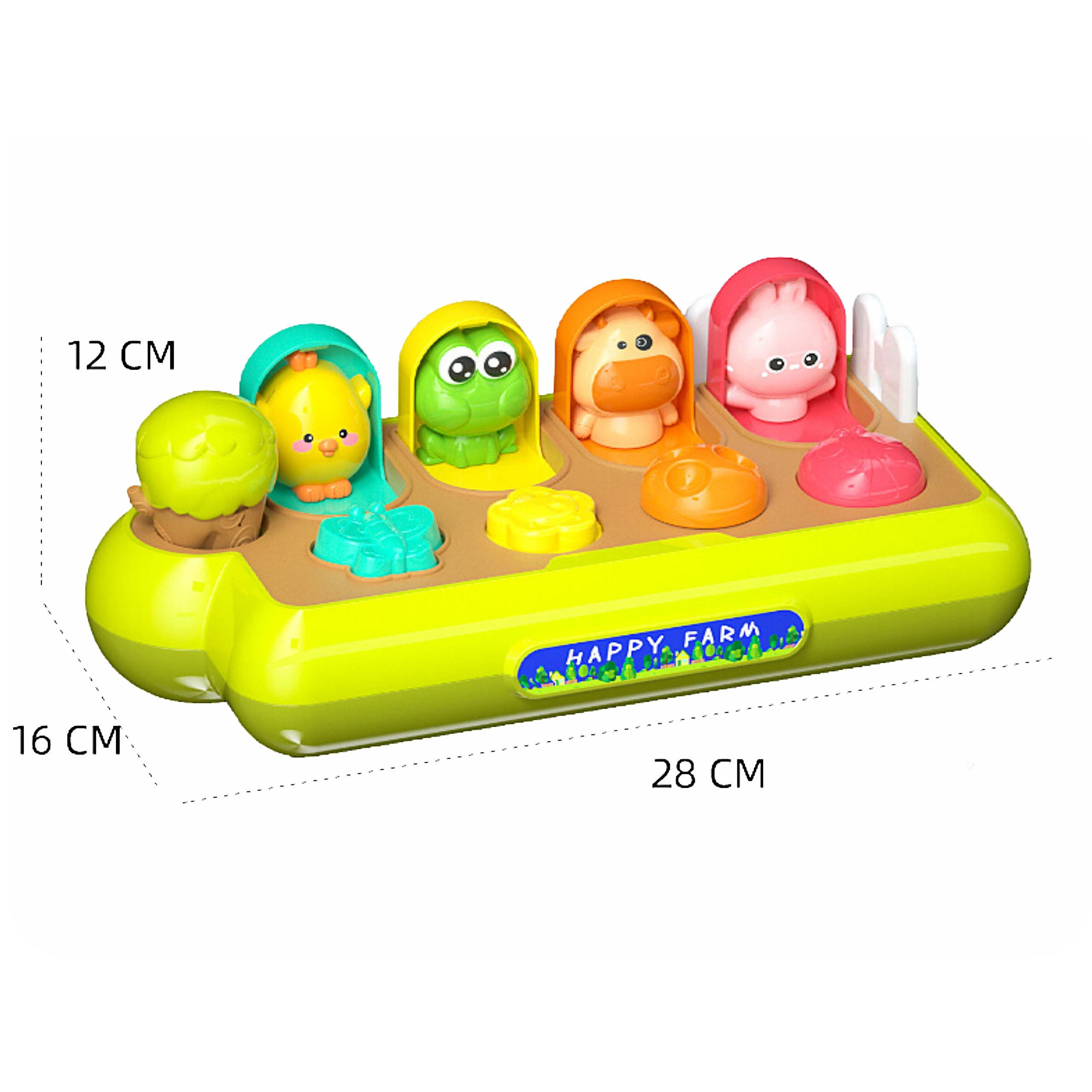 5 figurek zwierzątek wyskakuje przy użyciu odpowiadającego mu przyciskowi. Dziecko samo odkryje ciąg przyczynowo skutkowy, dlaczego dana figurka wyskoczyła.