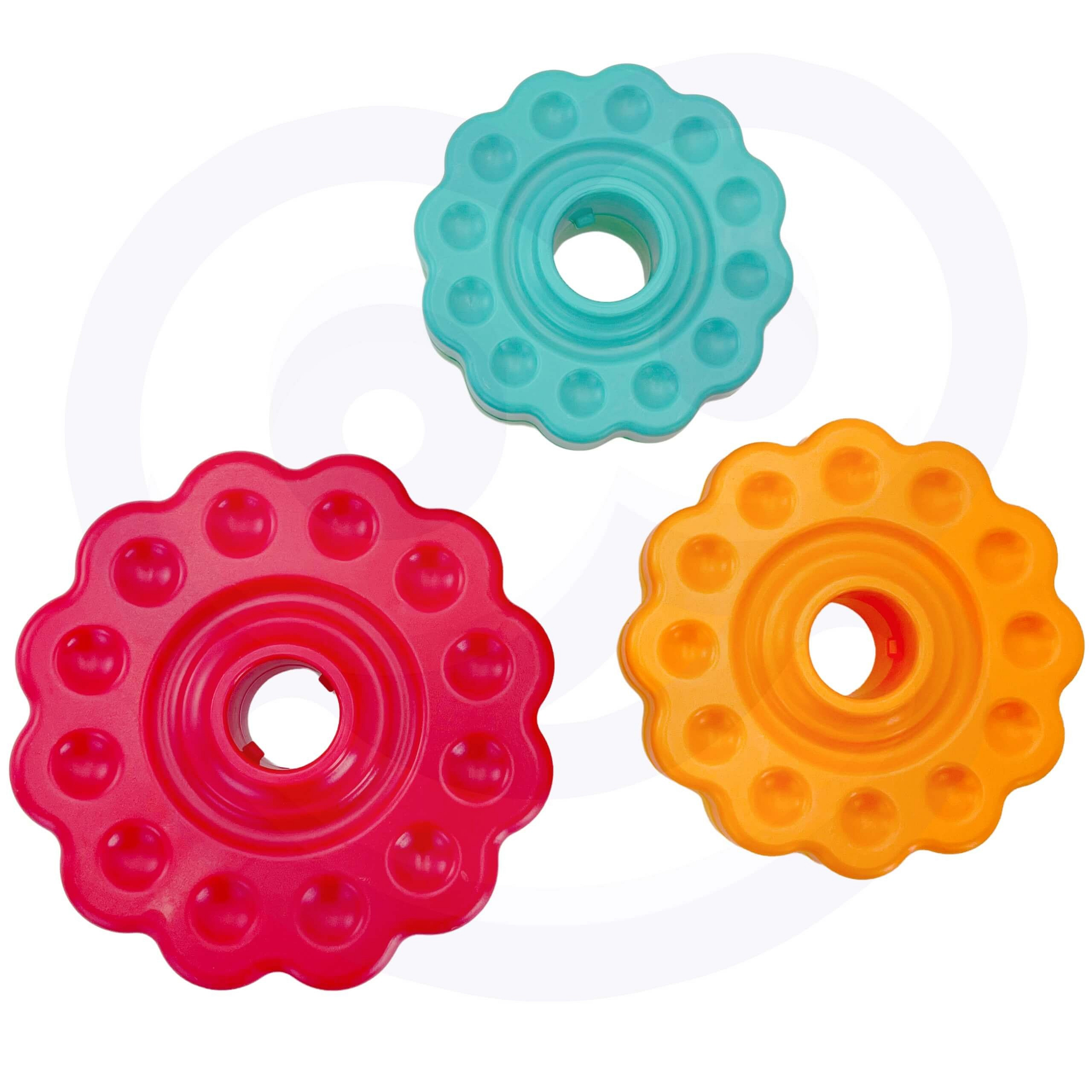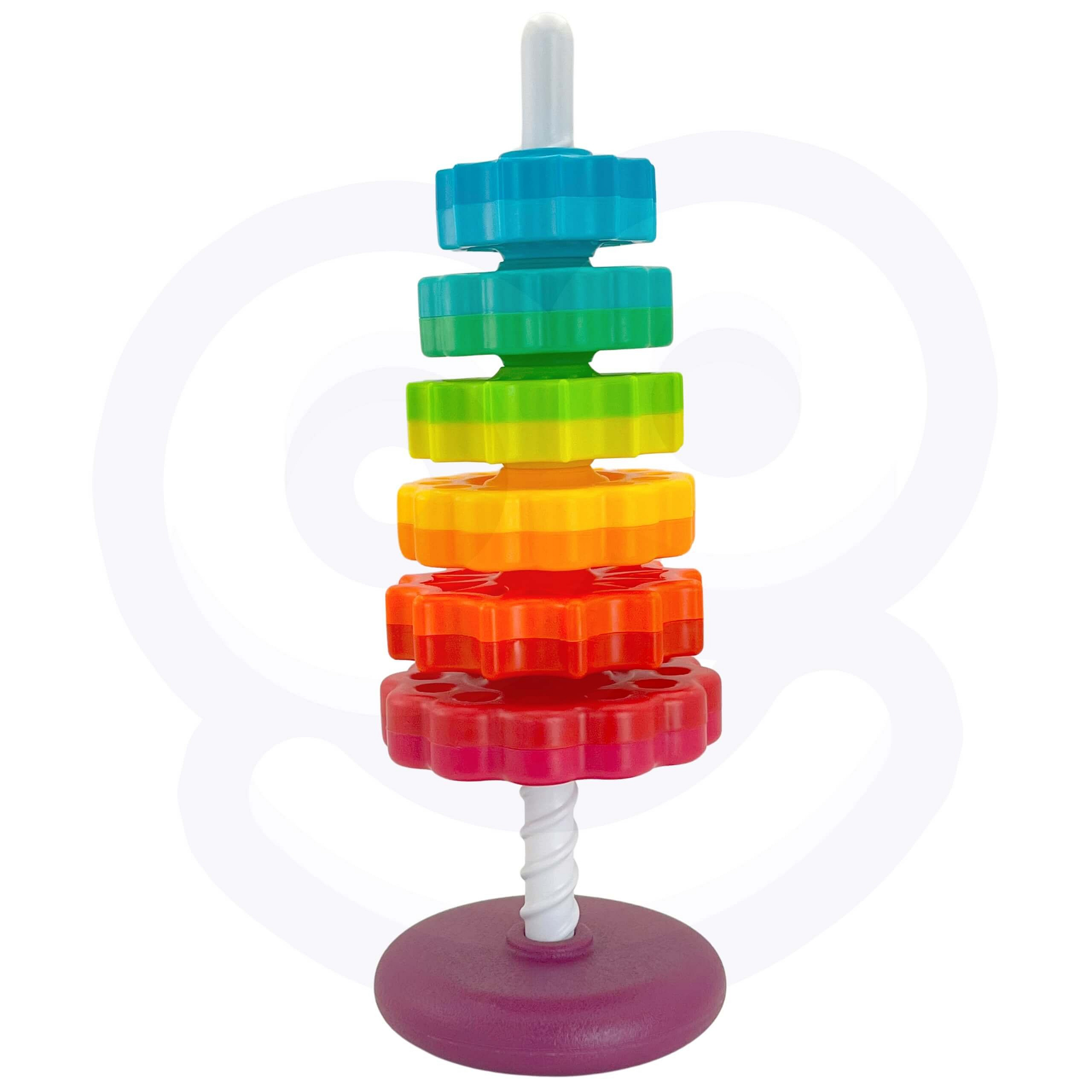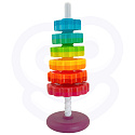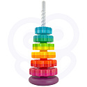 - Zestaw zawiera sześć gwiazdowych krążków, które można układać na sobie, tworząc kolorową i kręcącą się piramidę
