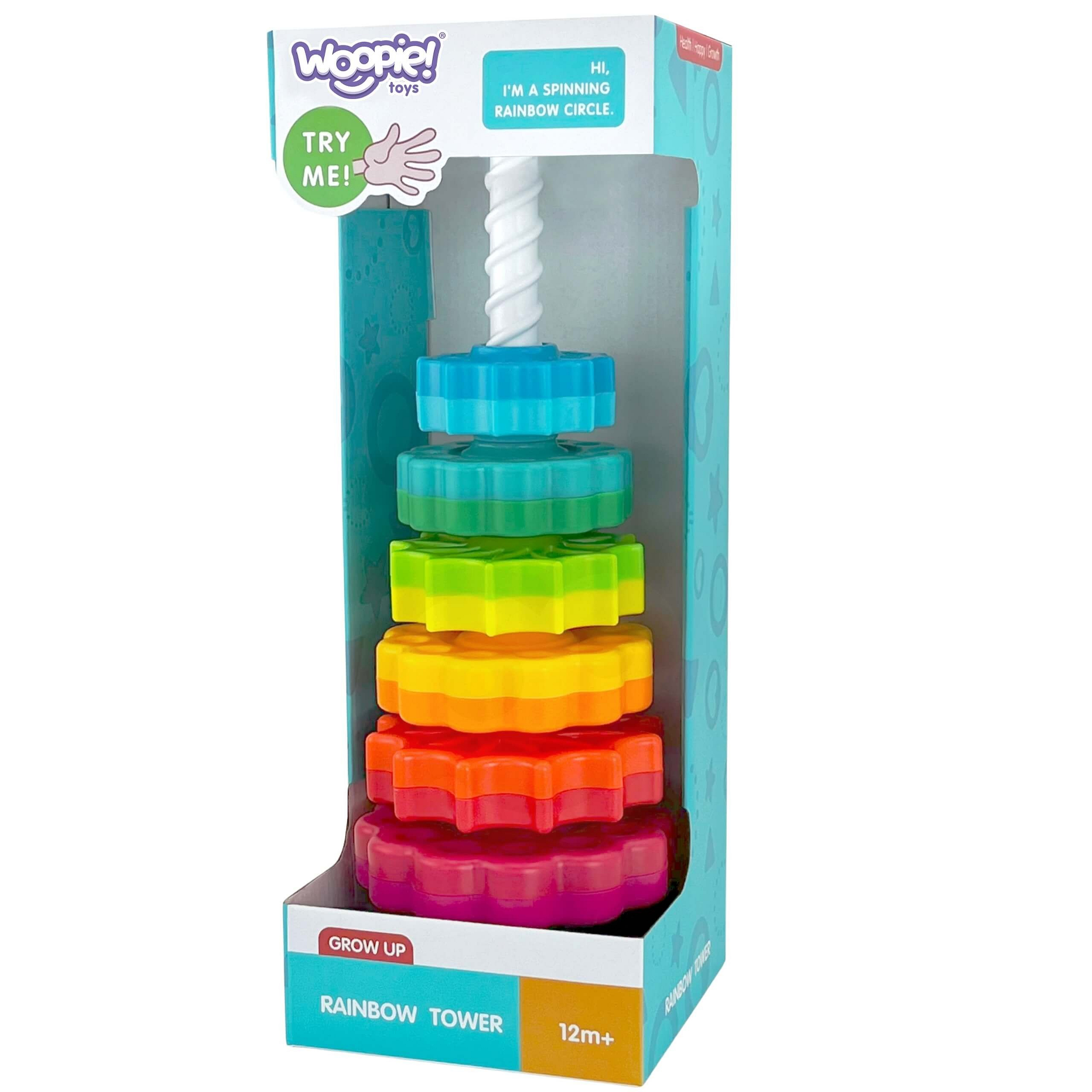 Zakręcona wieża od marki WOOPIE to wyjątkowa zabawka dla dzieci, która wprowadza maluszki w świat fascynujących kolorów, kształtów i ruchu. Składa się z kolorowych elementów, które umieszczamy na drążku wkręcając je. Ta piramida nie tylko bawi, ale również edukuje, wspierając wszechstronny rozwój dziecka. Dzięki solidnemu wykonaniu z bezpiecznych materiałów, zakręcona wieża zapewnia trwałą i bezpieczną zabawkę, która z pewnością zainteresuje Twojego maluszka na długie godziny. Zestaw składa się z 6 krążków w różnych kolorach i kształtach oraz drążka umieszczonego na podstawce. Elementy są dwukolorowe, aby urozmaicić układanie krążków w wieżę na różne sposoby. Składanie piramidy wymaga od dziecka logicznego myślenia i planowania kolejnych kroków.