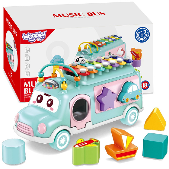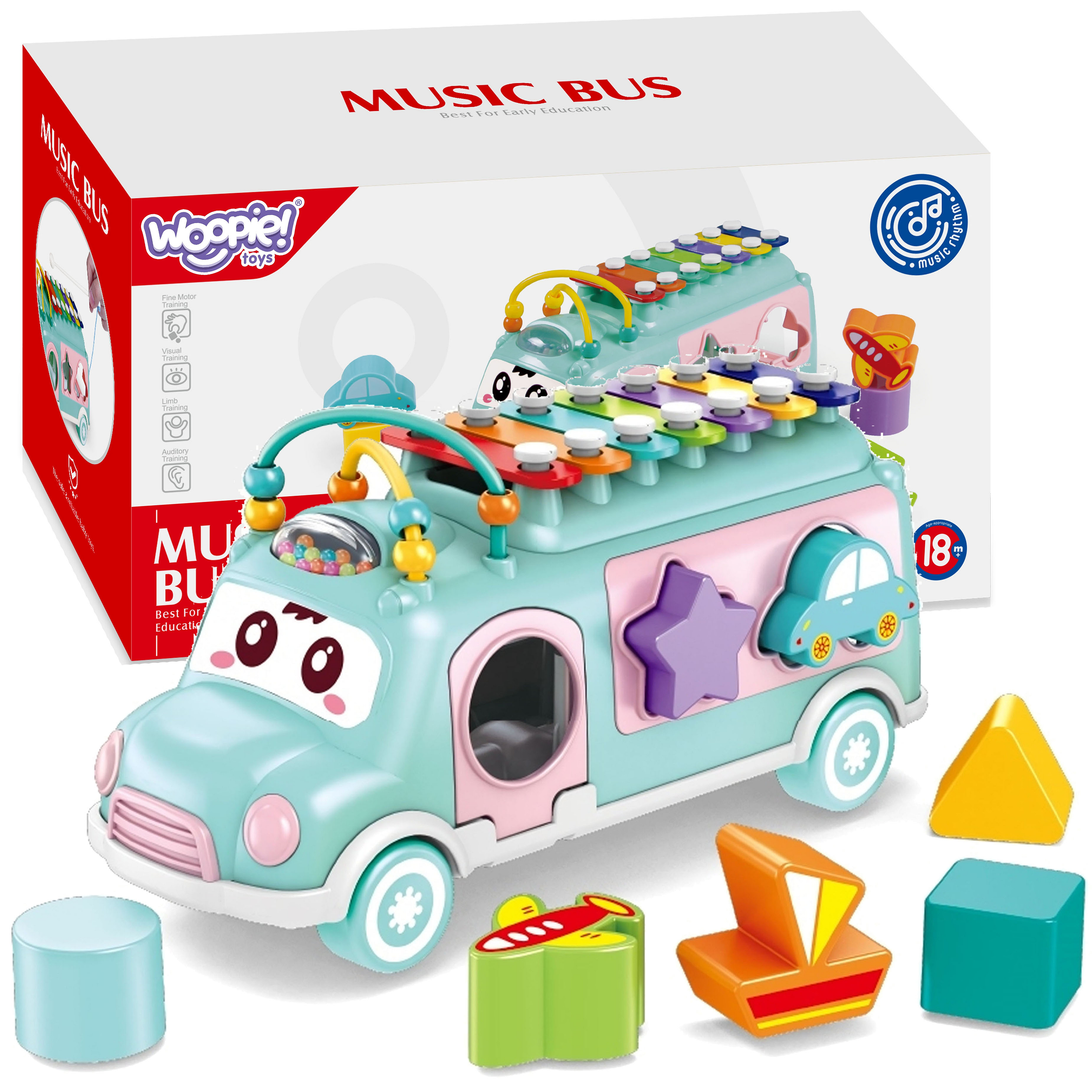 WOOPIE BABY Samochodzik Muzyczny Sorter z Cymbałkami to wielofunkcyjna zabawka, która łączy w sobie radość z muzykowania, naukę logicznego myślenia oraz rozwój sprawności fizycznej. Ten uroczy, zielony pojazd kryje w sobie mnóstwo niespodzianek, które angażują zmysły dziecka na wielu poziomach. Dzięki połączeniu instrumentu muzycznego, sortera kształtów oraz zabawki do ciągnięcia, produkt stanowi idealne wsparcie dla wczesnego rozwoju malucha, zachęcając do aktywnej i kreatywnej zabawy.