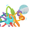 Zabawka sensoryczna od marki Woopie jest idealna dla małego ząbkującego dziecka. Składa się z miękkich, zachwycających kolorem rurek które przykuwają uwagę dziecka. Lekka konstrukcja sprawia, że maluch z łatwością trzyma ją w rączce. Skonstruowana została w sposób bezpieczny dla dziecka bez ostrych krawędzi i posiada miękkie elementy, które mogą być wykorzystywane jako gryzak. Poprzez zabawę z nią wpływa na rozwój zmysłów dotyku, wzroku i słuchu. Zawiera w sobie grzechotkę, która może przyciągnąć uwagę. Na giętkich zawijasach można przesuwać umieszczone kolorowe elementy. Zabawkę można przechowywać w lodówce, aby zapewnić lepszą ulgę obolałych dziąseł dziecka ząbkującego.