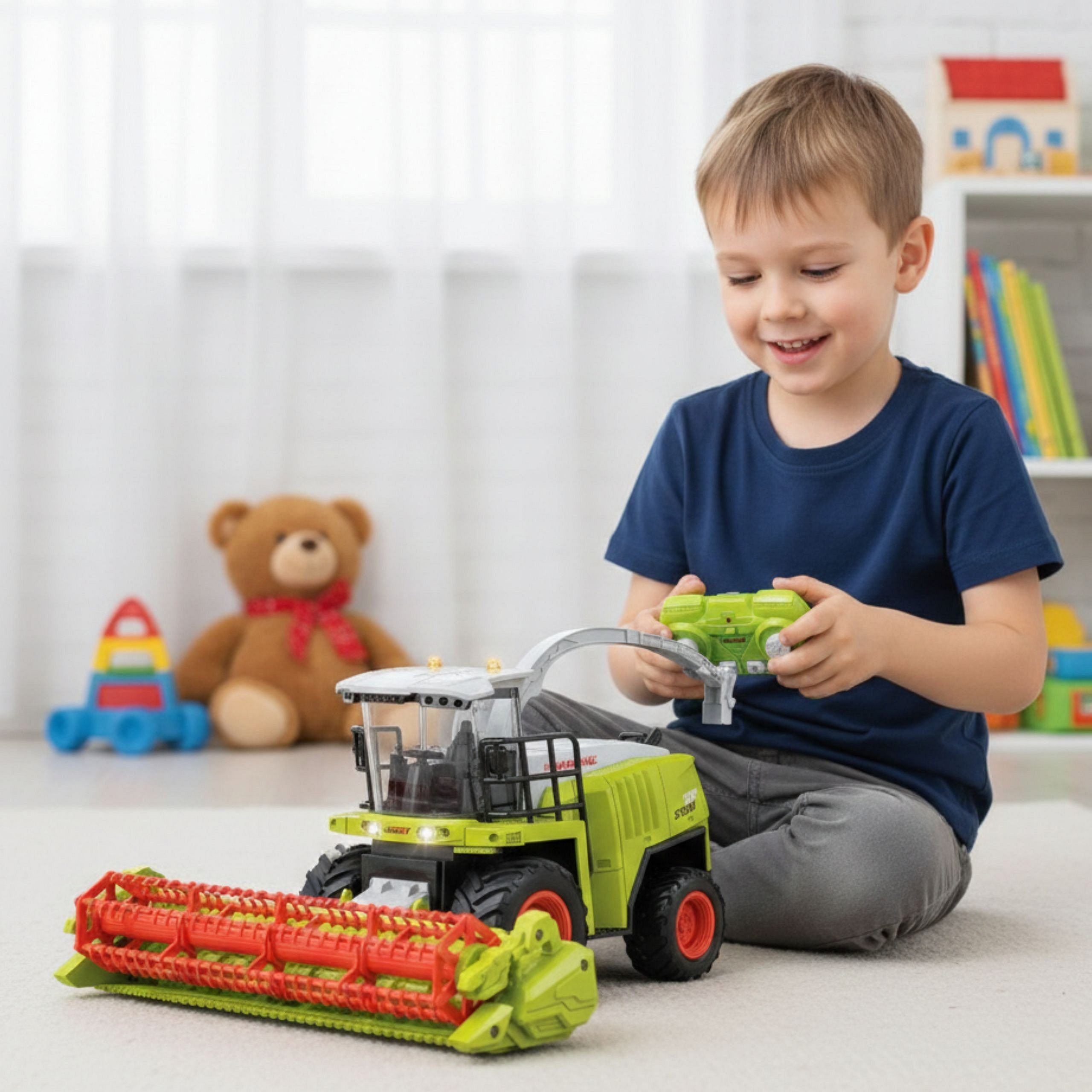 Zdalnie sterowany kombajn rolniczy marki Woopie to imponujący pojazd, który zamienia pokój w pole pełne przygód i realistycznych akcji zbiorów. Duże koła, ruchomy zbieracz oraz obrotowy wyrzutnik „sieczki” zachęcają do scenariuszy rodem z gospodarstwa, rozwijając wyobraźnię i dając mnóstwo satysfakcji z prowadzenia maszyny jak prawdziwy operator.
