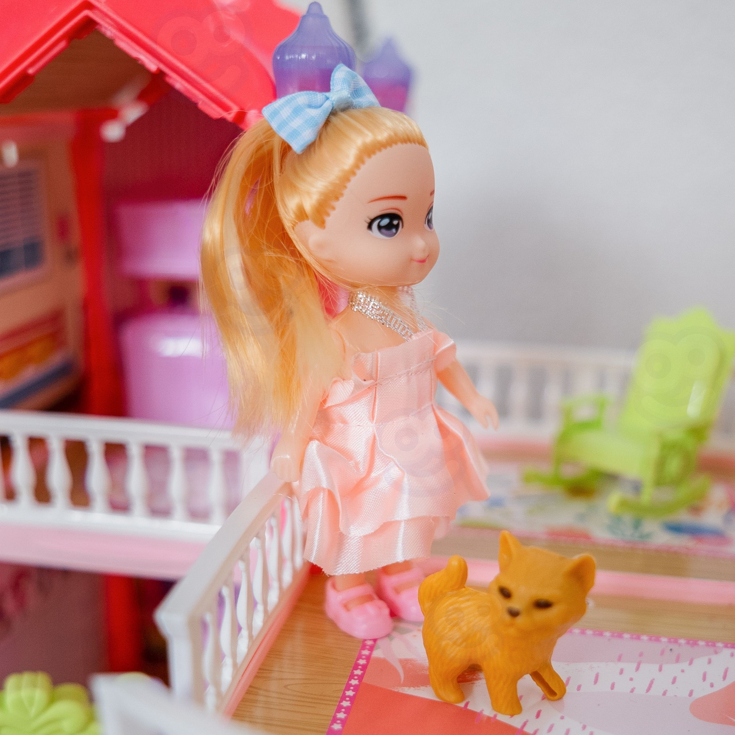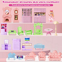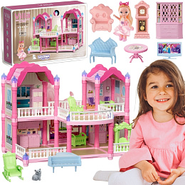 realistickým vybavením a svítícími věžičkami způsobuje, že domek vypadá jako skutečný princeznin palác! Barevná paleta je laděna do jemných pastelových tónů – růžová, fialová a mátová vytvářejí přátelskou atmosféru, která povzbuzuje ke kreativní hře. Ideálně se hodí pro zábavu ve společnosti přátel nebo sourozenců.