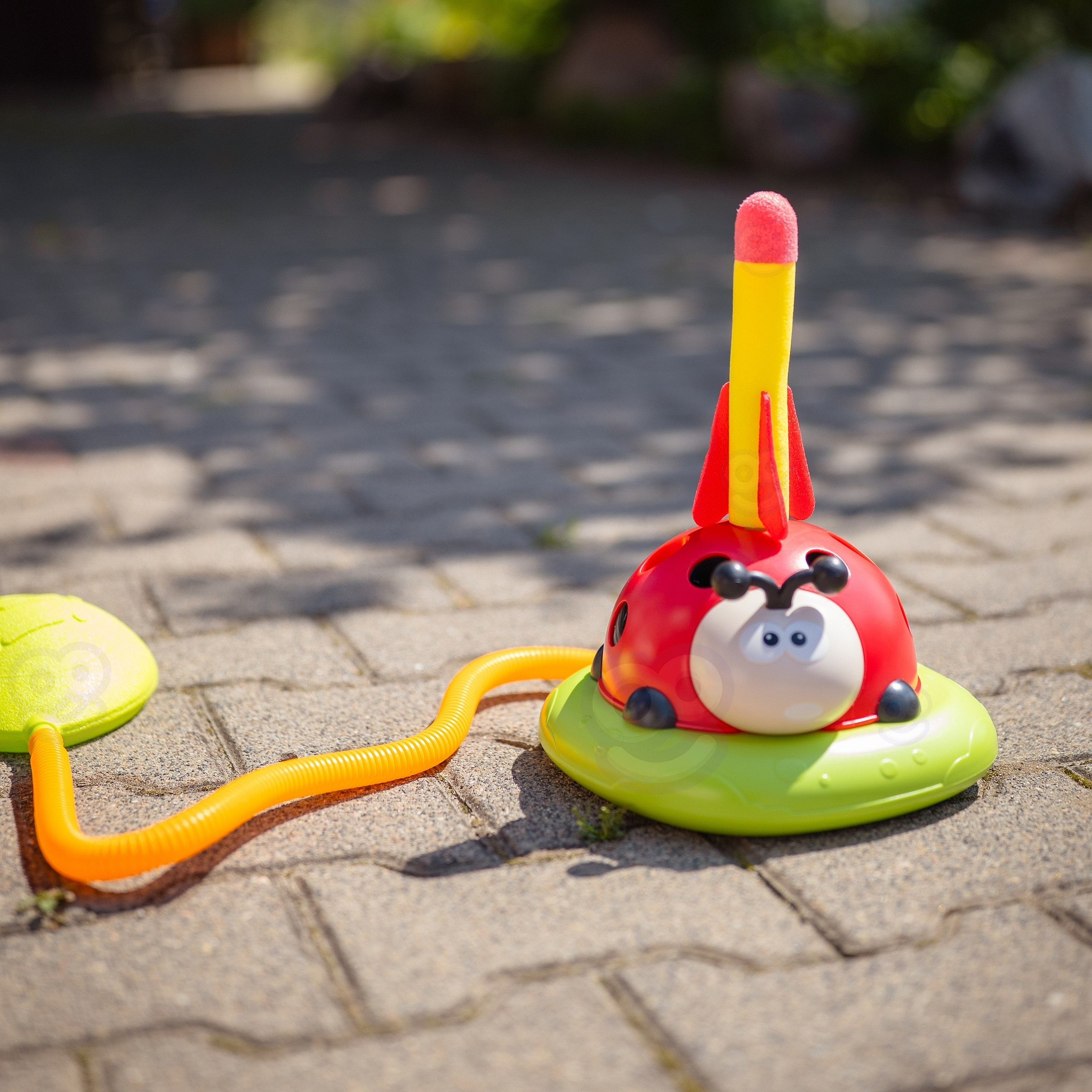 - - Wyrzutnia napędzana siłą powietrza – dziecko naciska na poduszkę powietrzną, a rakieta wznosi się nawet do 15 metrów.