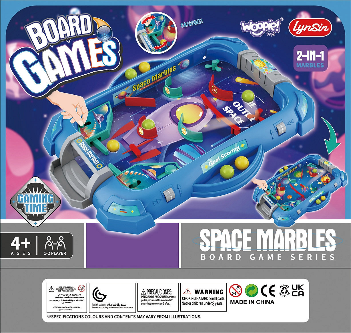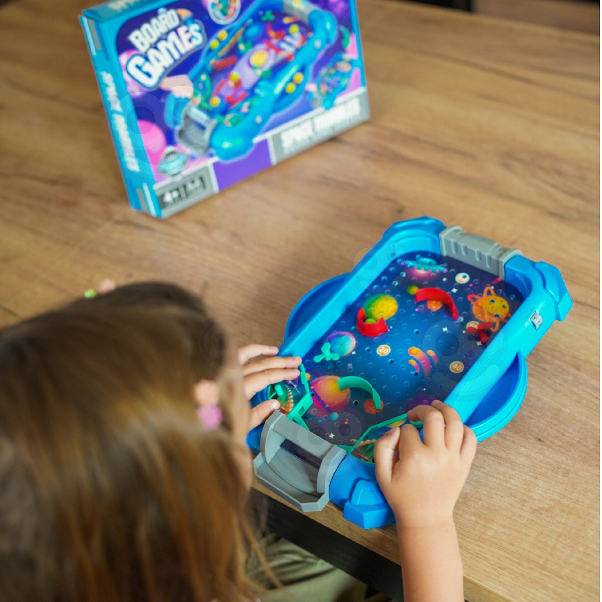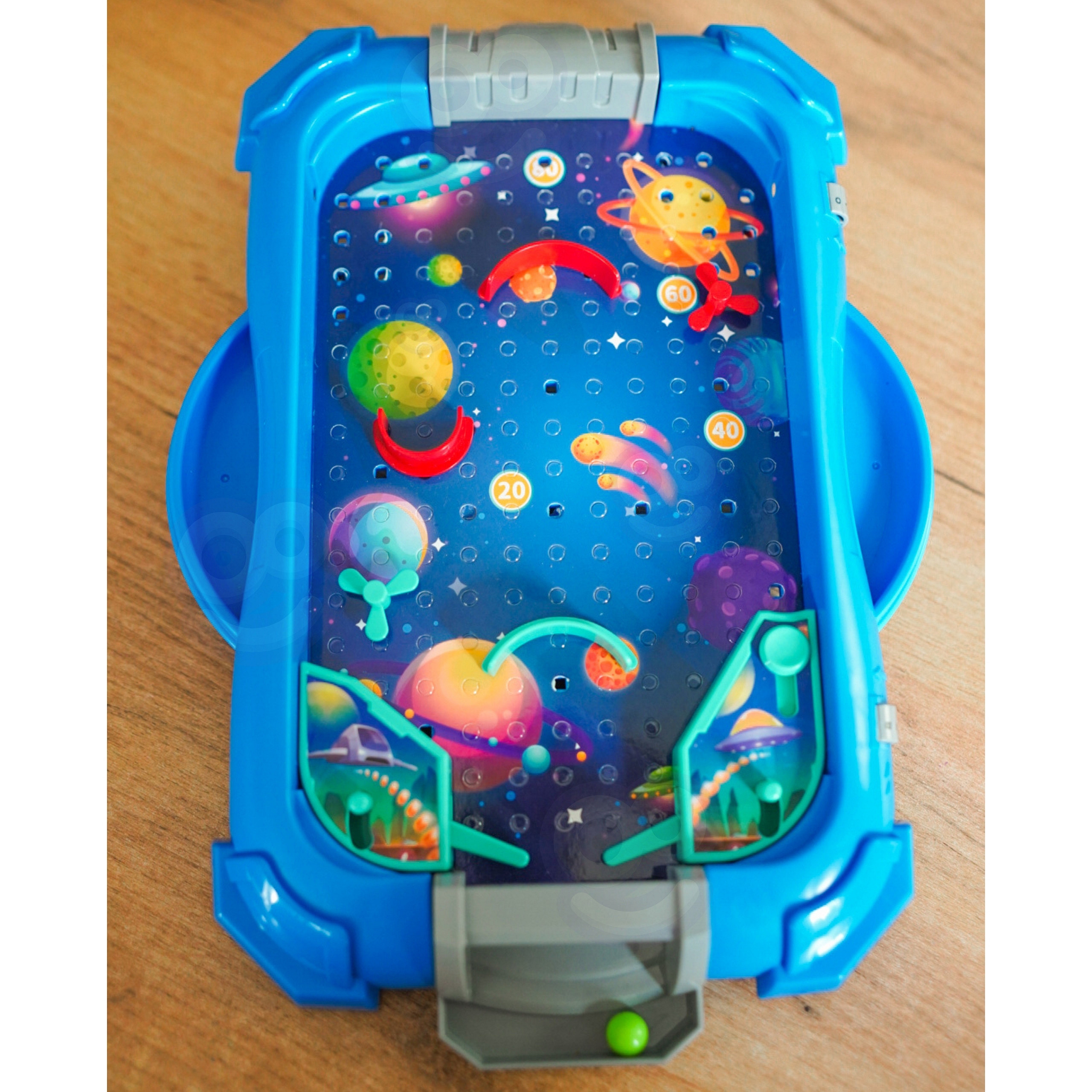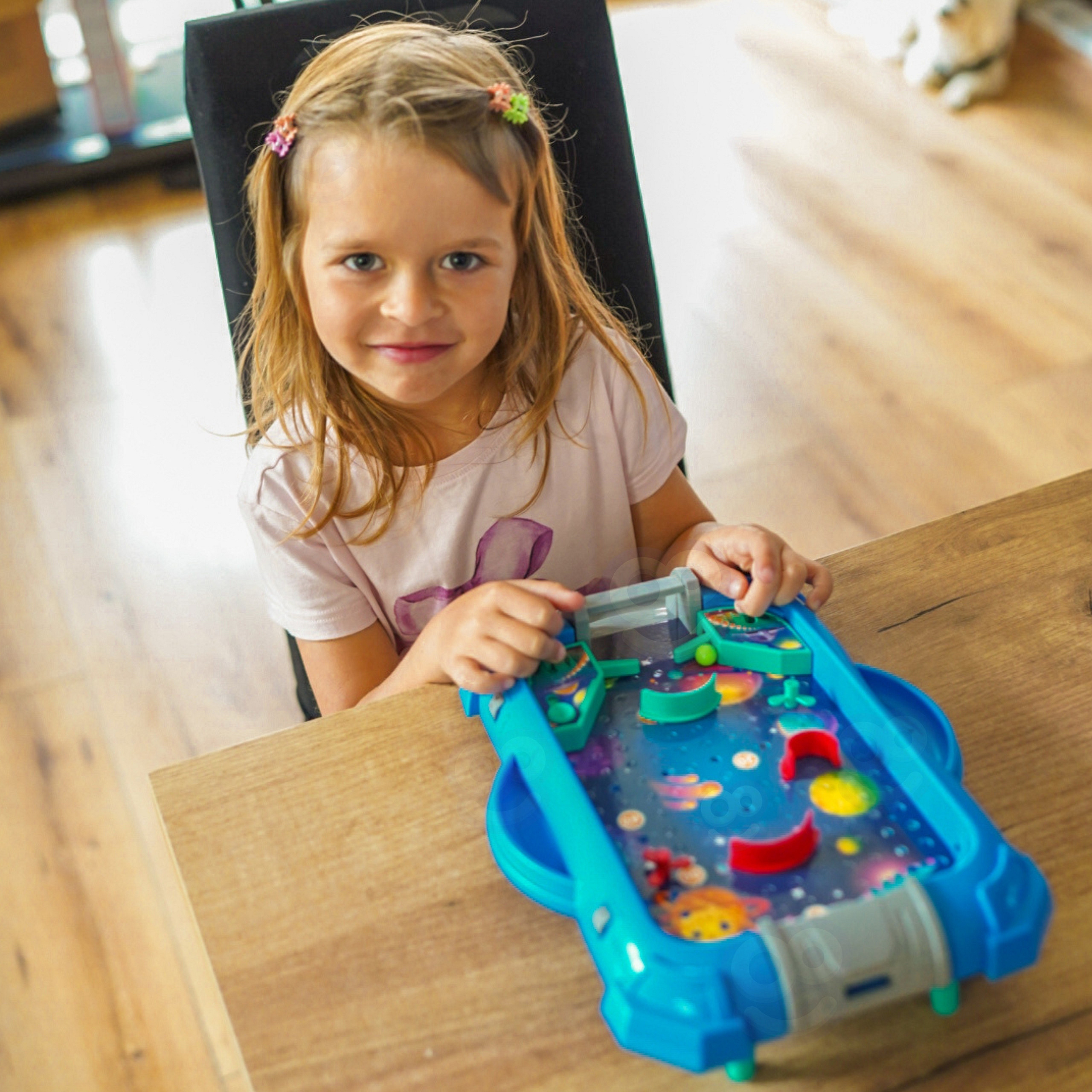 Gra Zręcznościowa Flipper " Kosmiczna Rozgrywka" od marki WOOPIE to świetny pomysł na dobrą zabawę dla twojego dziecka. To popularna gra zręcznościowa zaprojektowana do zabawy zarówno w pojedynkę jak i w większej grupie graczy. Przypomina prawdziwy automat Flipper co dodaje atrakcyjności zabawce! Celem gry jest zdobycie jak największej liczby punktów, wykorzystując różne ruchy i strategie. Proste zasady i kolorowe elementy przyciągają uwagę najmłodszych i sprawiają wiele radości z rozgrywki. Zabawka wykonana jest starannie, całość komponuje się rewelacyjne - na pewno spodoba się każdemu małemu fanowi tej gry. Zasady są proste! wystarczy że samodzielnie złożysz planszę - nie jest to nic trudnego. Wystarczy w odpowiednie dziurki na planszy, wcisnąć elementy do gry. Teraz możesz zacząć odbijać kulkę!