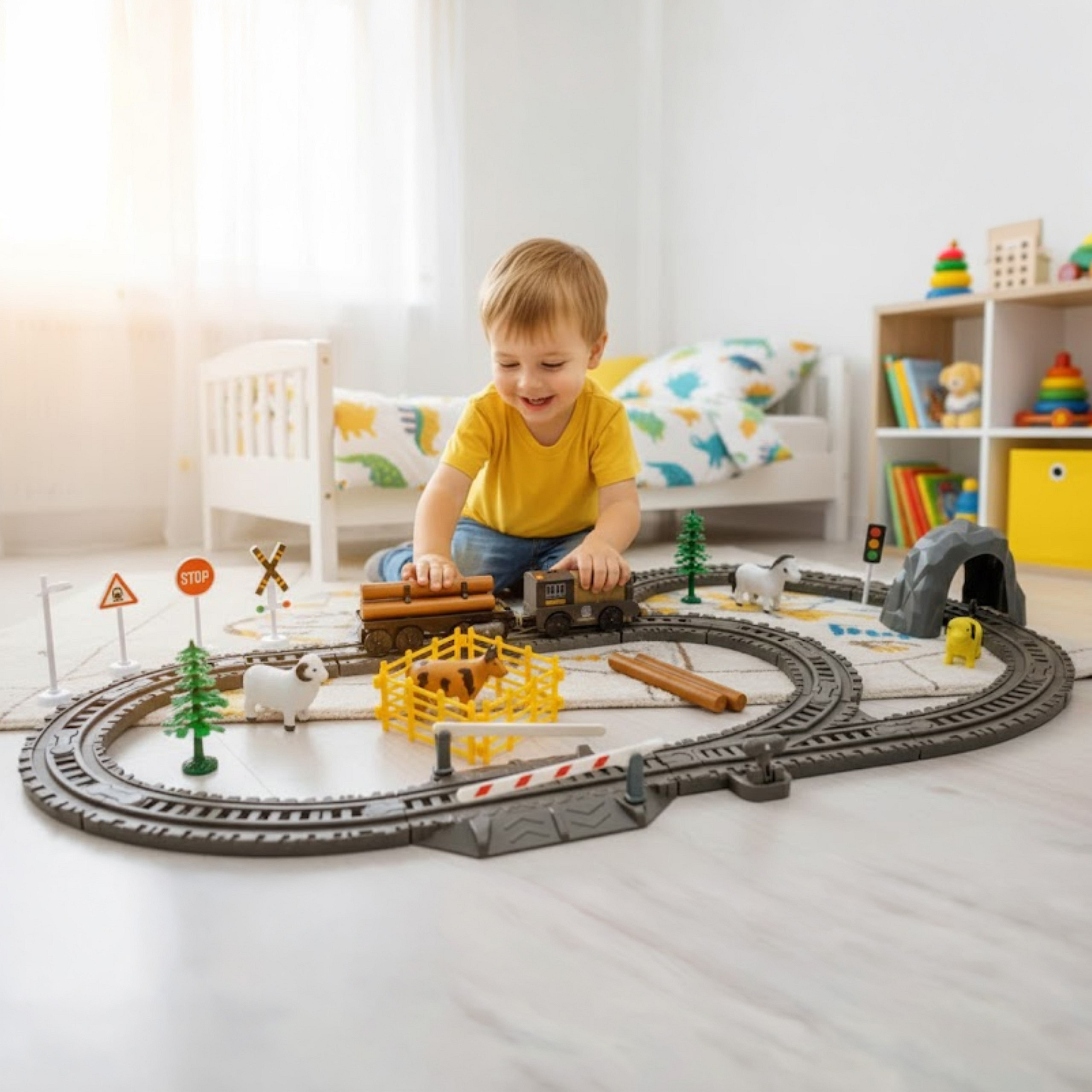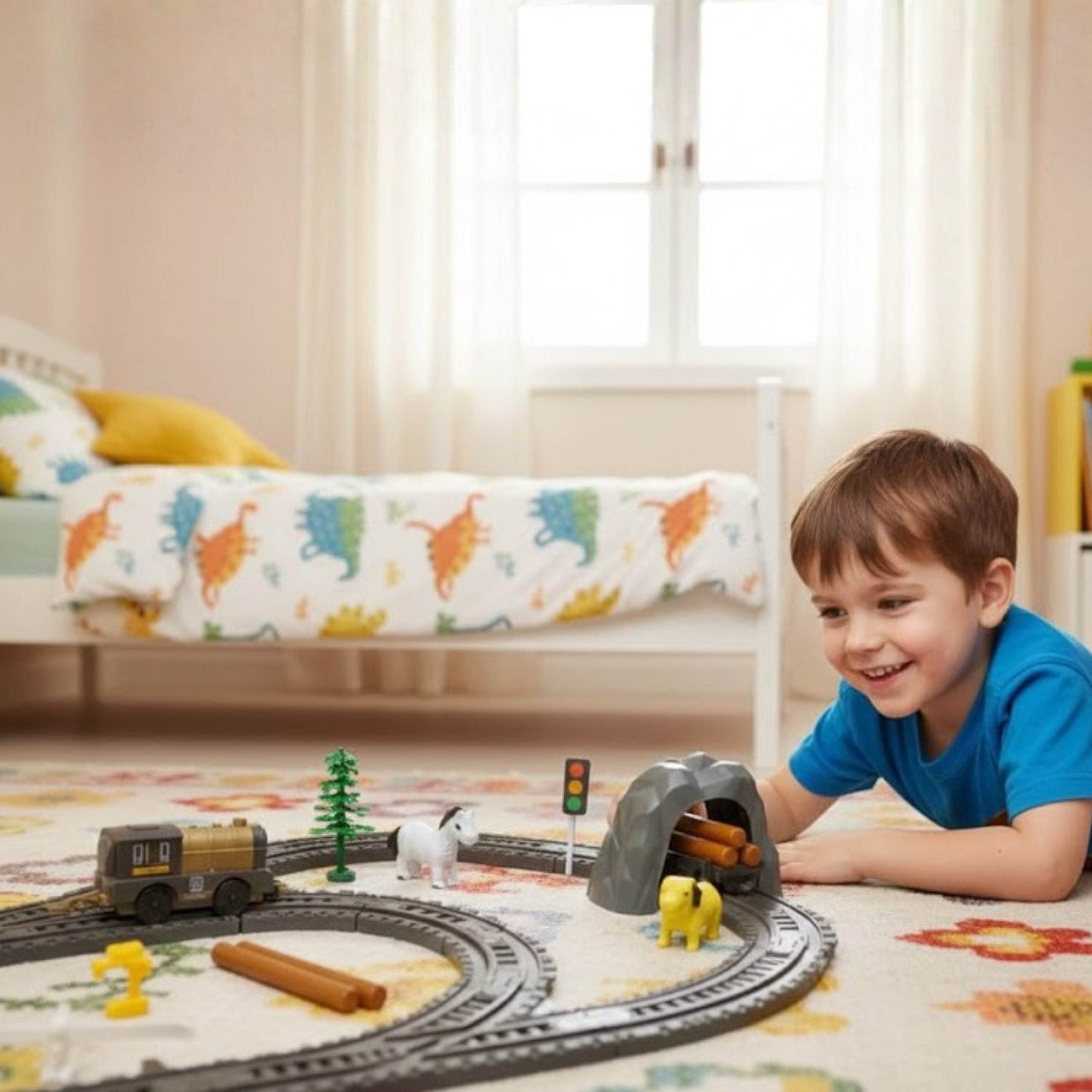Pozwól swojej rodzinie wyruszyć w fascynującą podróż z elektryczną kolejką XL od marki WOOPIE! Zestaw zawiera aż 66 elementów — to prawdziwa gratka dla małych i dużych entuzjastów kolei. Lokomotywa zasilana na baterię porusza składem oraz posiada światełko, co nadaje zabawie realizmu. Tory zostały zaprojektowane ze zwrotnicami, co umożliwia zmianę kierunku jazdy i tworzenie ciekawych układów tras. Kolorowe fragmenty torowiska i skład zachęcają do kreatywnego układania i eksperymentowania, rozwijając wyobraźnię dziecka. Dzięki temu zestawowi zabawa łączy w sobie naukę i rozrywkę — maluch rozwija zmysł przestrzenny i myślenie techniczne, jednocześnie ciesząc się długimi godzinami zabawy.