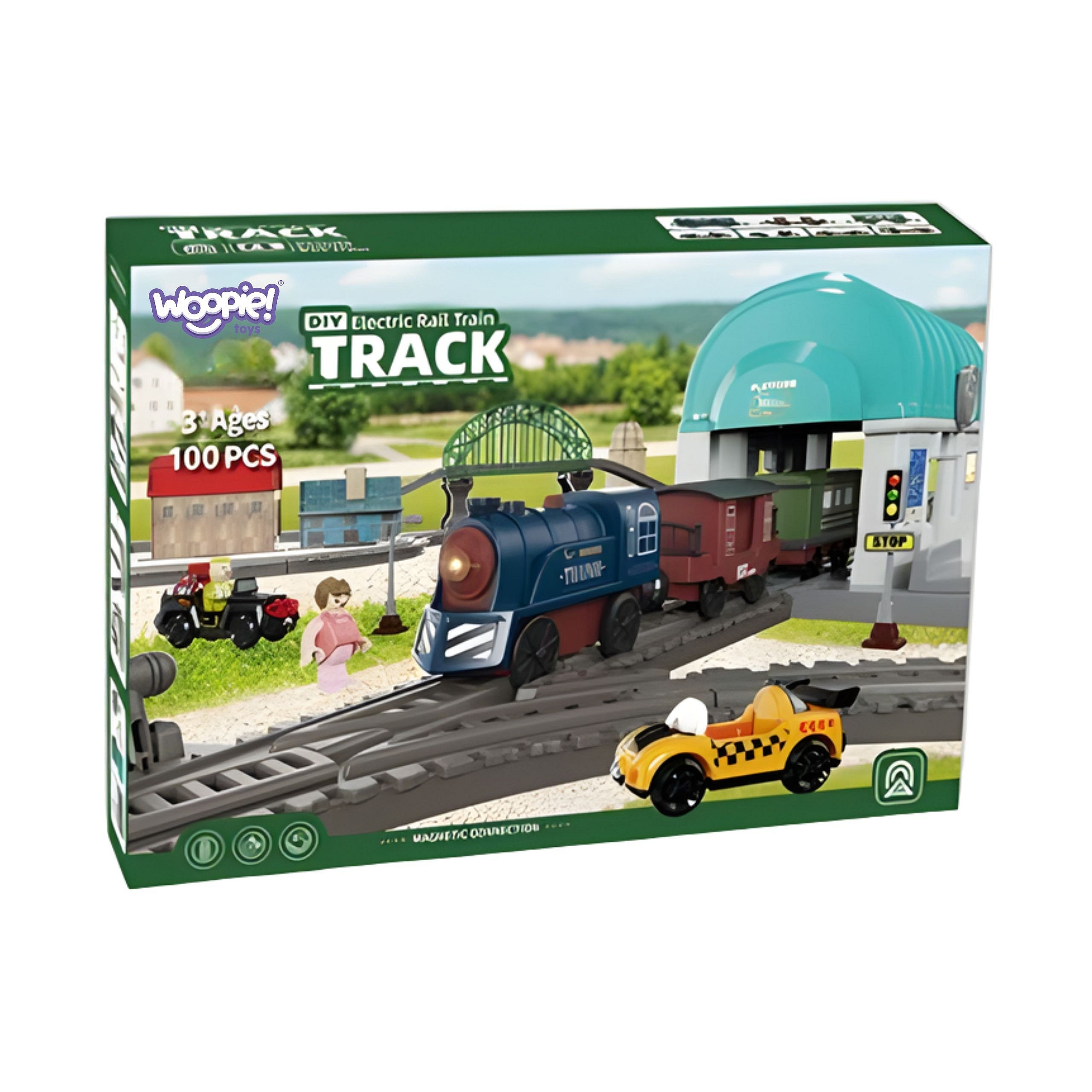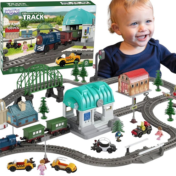 Przenieś swoje dziecko w świat ekscytujących przygód z rozbudowanym zestawem kolejki elektrycznej od Woopie. Ten kolorowy i bogaty w szczegóły komplet to doskonała propozycja dla małych fanów transportu, maszyn i budowania. W zestawie znajduje się klasyczna lokomotywa z realistycznymi efektami dźwiękowymi i świetlnymi, wagony towarowe, miniaturowe samochodziki, figurki postaci oraz wiele elementów scenerii – od tunelu i mostu po stację kolejową i znaki drogowe. Dzięki temu dziecko może tworzyć własne, niepowtarzalne trasy oraz historie z życia małego miasteczka kolejowego. Magnetyczne złącza pozwalają łatwo i stabilnie łączyć wagony, a ruch lokomotywy po torach wygląda jak prawdziwy przejazd kolejowy! To nie tylko zwykła kolejka – to cała mała sceneria miasteczka, w której dziecko może rozwijać swoją kreatywność, budując różne konfiguracje torów i odgrywając scenki z codziennego życia. Elektryczna lokomotywa jadąc po torach przejeżdża przez most i tunel, zatrzymuje się na stacji, a wszystko to z dźwiękiem i ruchem, który fascynuje najmłodszych. Dziecko uczy się planowania, logicznego myślenia i rozwija zdolności manualne, tworząc przy tym fascynujące scenariusze podróży i przewozu towarów. Zestaw składa się ze 108elementów, wykonanych z trwałych i bezpiecznych materiałów, odpornych na intensywną zabawę.