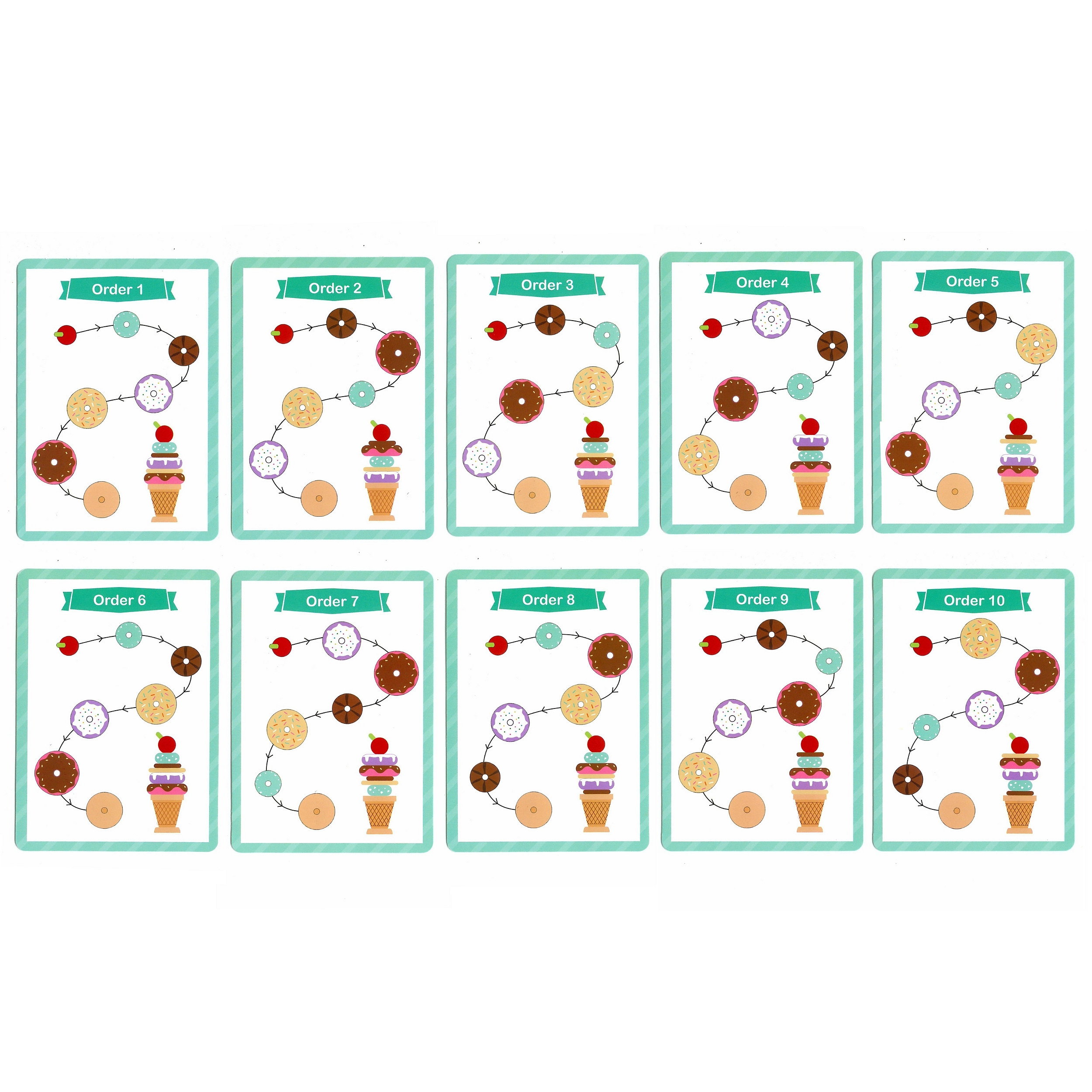 - Koordynację wzrokowo-ruchową – zabawa polega na łączeniu tego, co widzi dziecko (wzór na karcie), z tym, co wykonuje rękami. Dziecko ćwiczy koncentrację i uczy się łączyć obserwację z działaniem, co pozytywnie wpływa na kontrolę ruchów i precyzję.