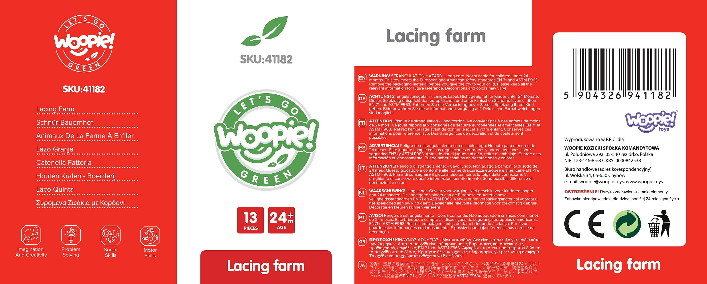 Koraliki Do Nawlekania od marki WOOPIE z serii GREEN to klasyczna przeplatanka w nowoczesnym, edukacyjnym wydaniu. Motyw farmy, w tym urocze zwierzątka i elementy wiejskiego życia, pobudza wyobraźnię i zachęca do kreatywnej zabawy. Dziecko nawleka drewniane elementy na sznureczek, ćwicząc przy tym zręczność, koncentrację i cierpliwość. Naturalne drewno i ekologiczne wykonanie czynią zabawkę bezpieczną i przyjazną środowisku.