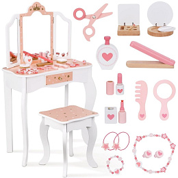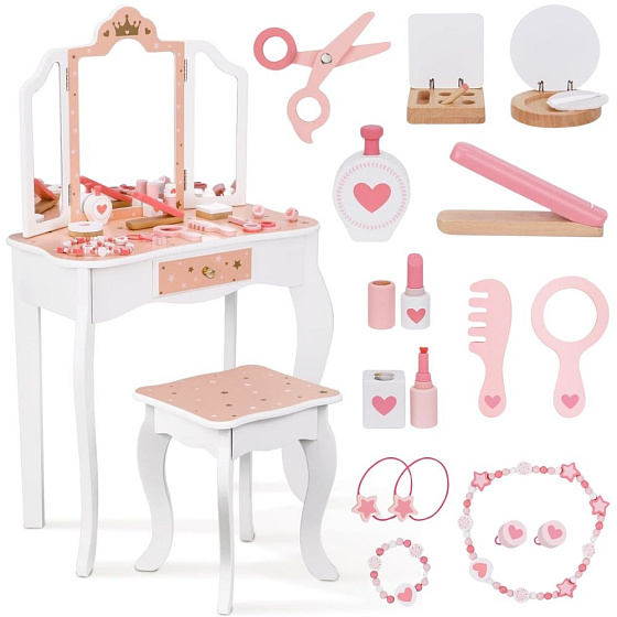 - - Wygodny stołek w zestawie – dopasowany do wysokości toaletki, zapewnia komfort podczas zabawy