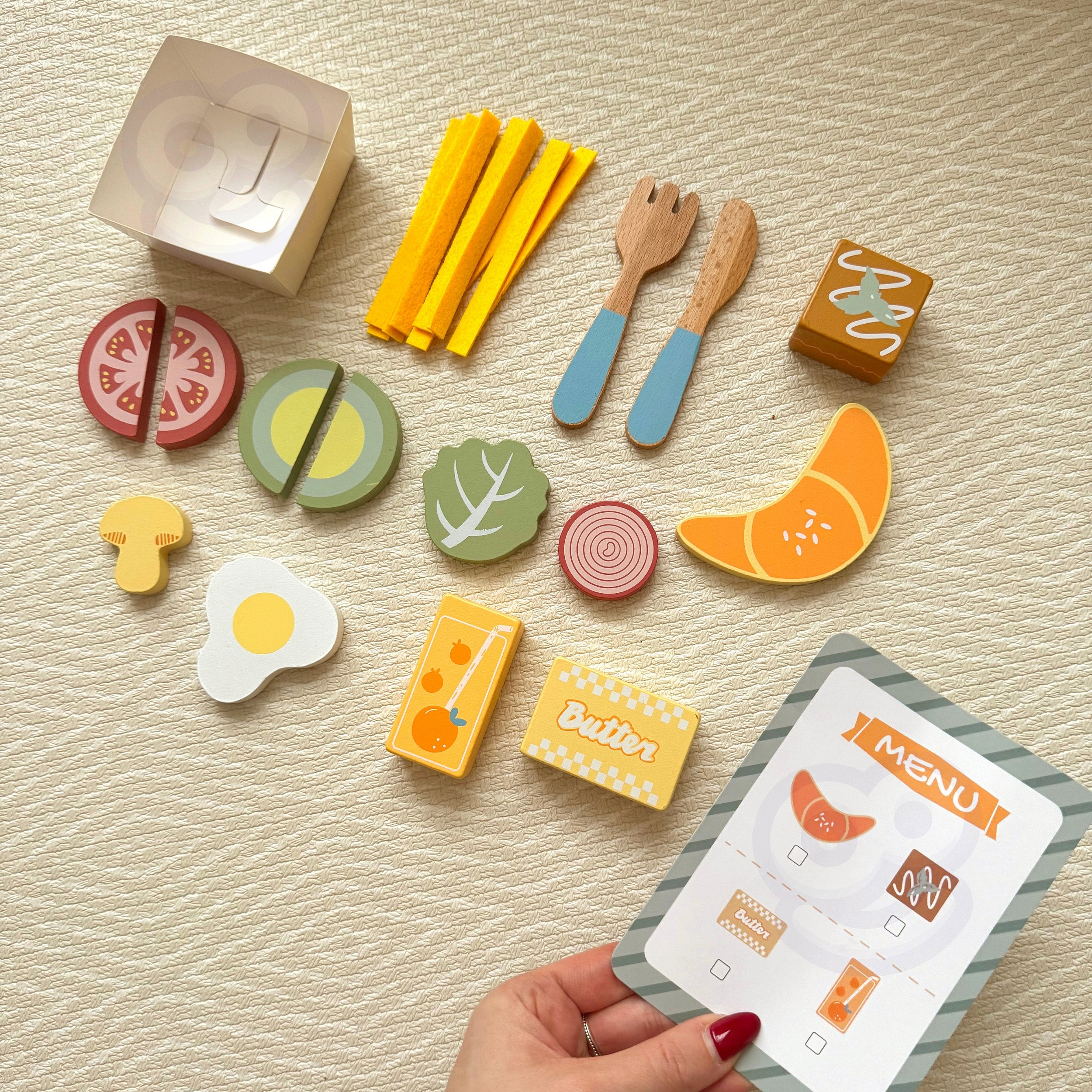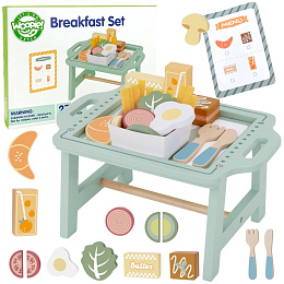 Zestaw Śniadaniowy od Woopie Green! – to śniadanie marzeń… podane do łóżka! Zamień zwykłą zabawę w kulinarną przygodę pełną smaku i stylu! Pastelowy zestaw śniadaniowy to prawdziwy hit dla małych szefów kuchni, którzy uwielbiają bawić się w serwowanie pysznych posiłków – od rana do wieczora! Urocza pastelowa taca i realistycznie wykonane drewniane elementy sprawiają, że zabawa staje się wyjątkowo angażująca i inspirująca