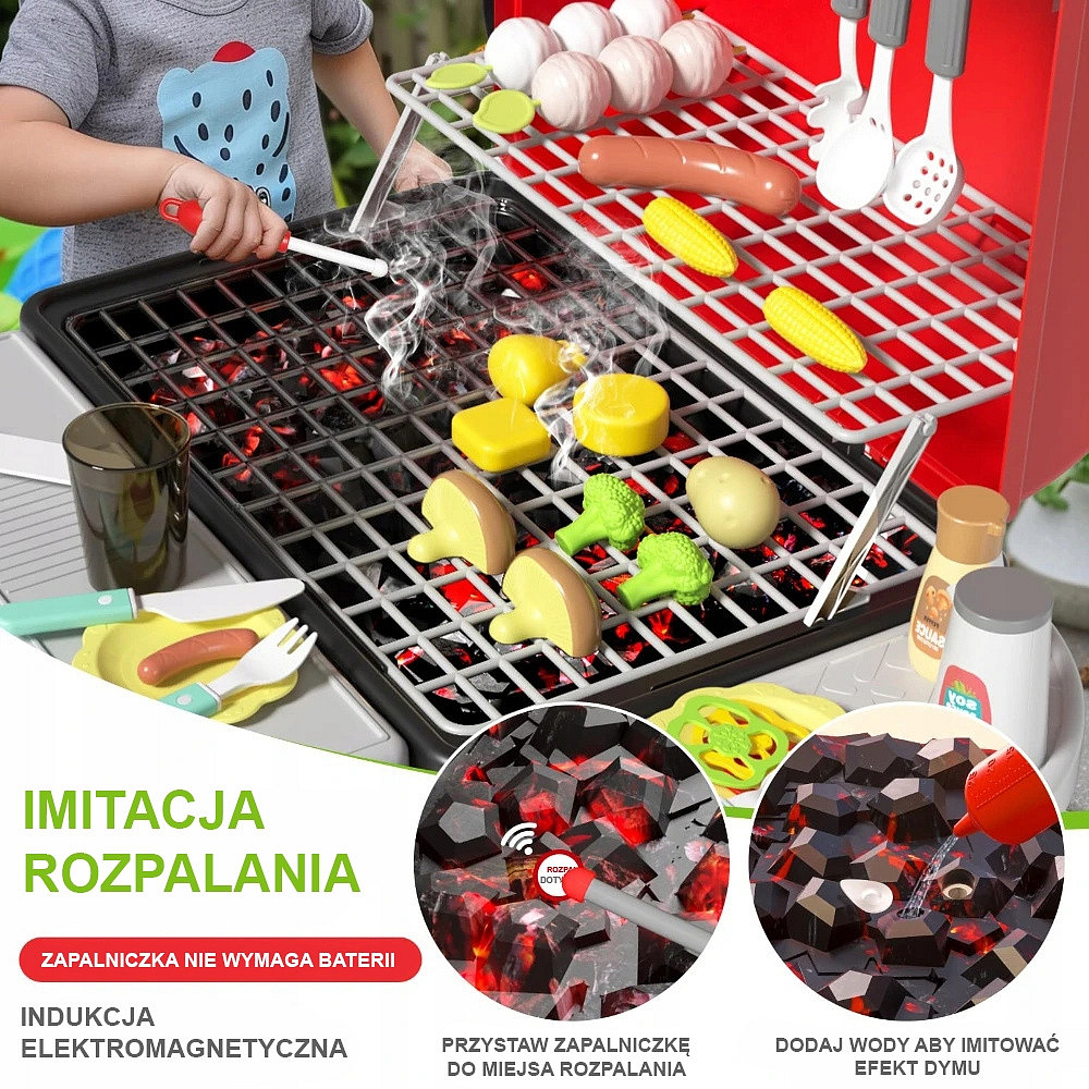 - - Posiada otwierany ruszt z pokrywą, co urozmaica zabawę w przygotowywanie potraw
