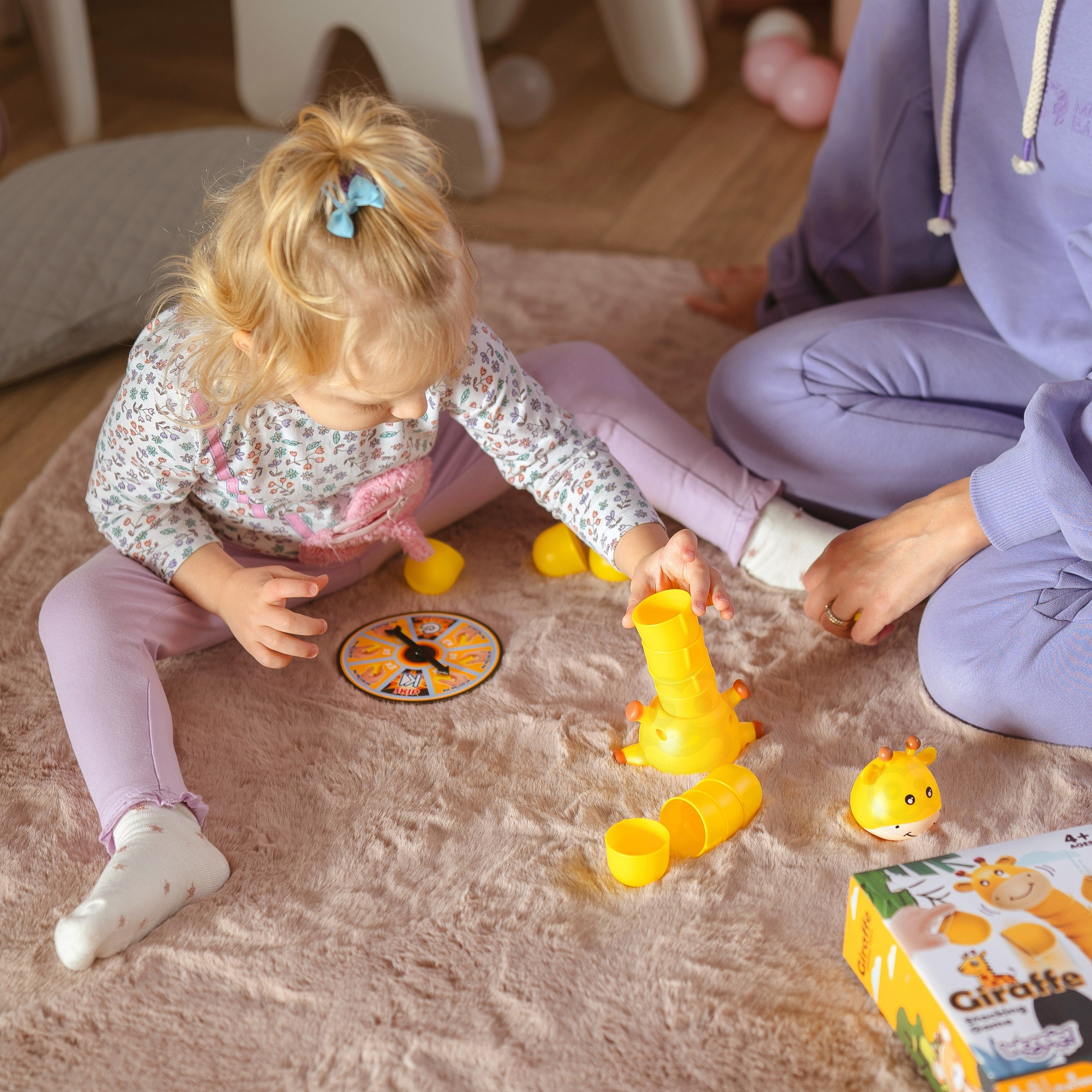Gra polega na ułożeniu jak najwyższej wieży tym samym szyj żyrafki. Koło fortuny decyduje o każdym następnym kroku, ile kubeczków trzeba dołożyć do szyj. Gra kończy się gry jeden z graczy przewróci żyrafkę.