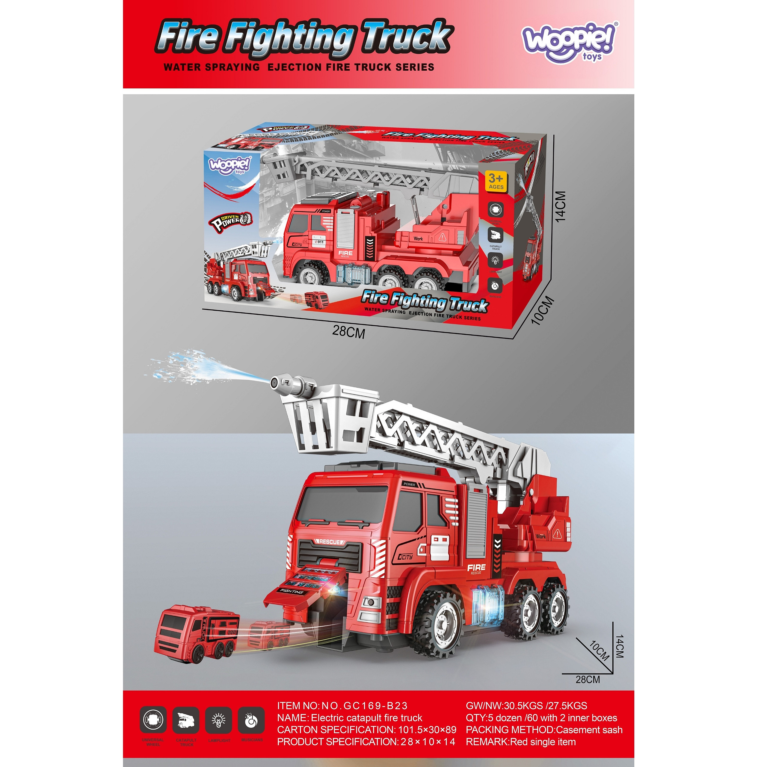 Samojeżdżący wóz strażacki to doskonała zabawka, która pozwoli każdemu małemu miłośnikowi pojazdów ratunkowych poczuć się jak prawdziwy bohater. Zabawka została zaprojektowana z dbałością o najmniejsze detale, które wiernie odwzorowują prawdziwy pojazd strażacki. Model wyposażony jest w wysuwającą się drabinę, oraz armatkę wodną. Po włączeniu pojazd zaczyna jeździć po podłodze wymachując drabiną z armatką wodną na boki, okazjonalnie wystrzeliwując z przodu pojazdu mini pojazdy straży pożarnej