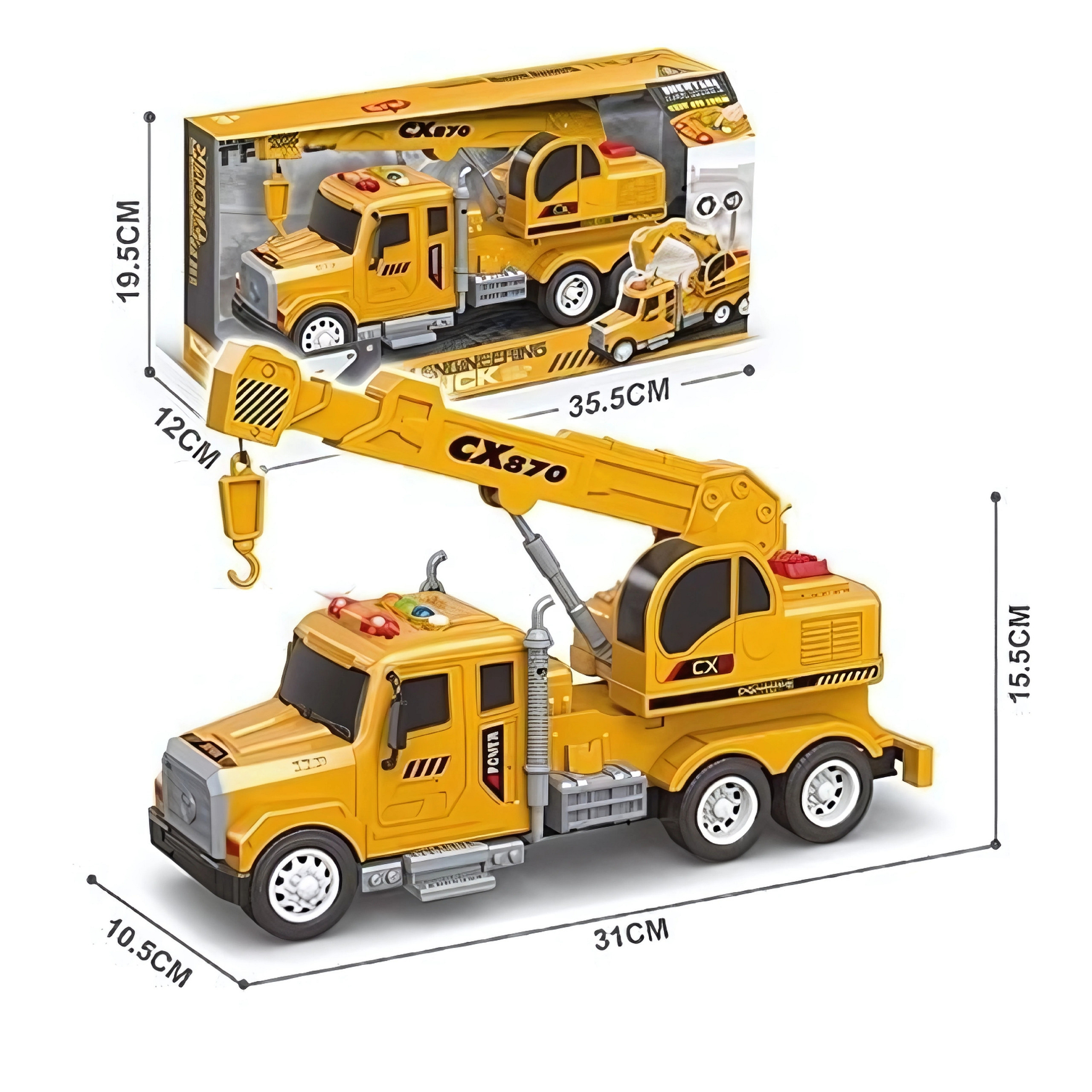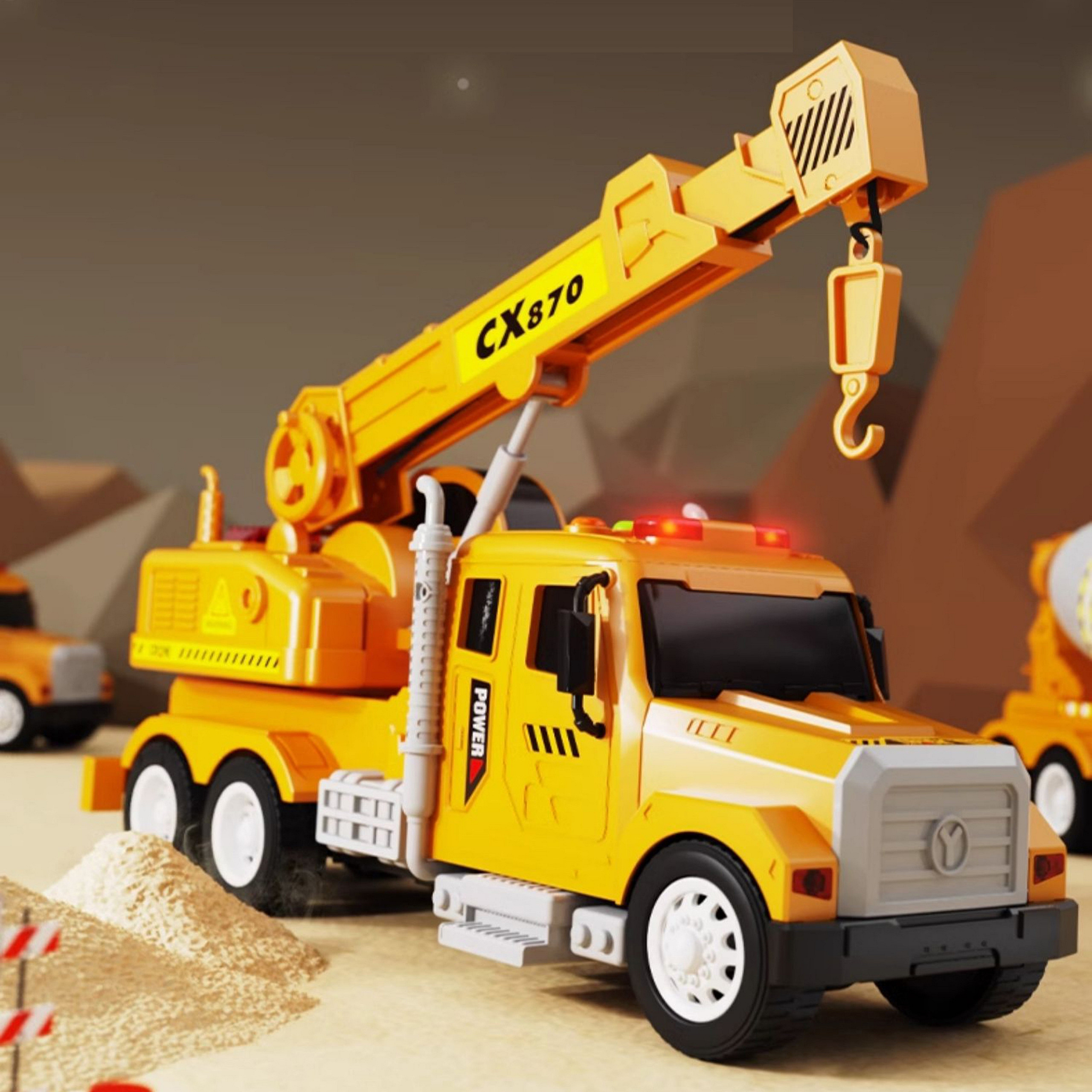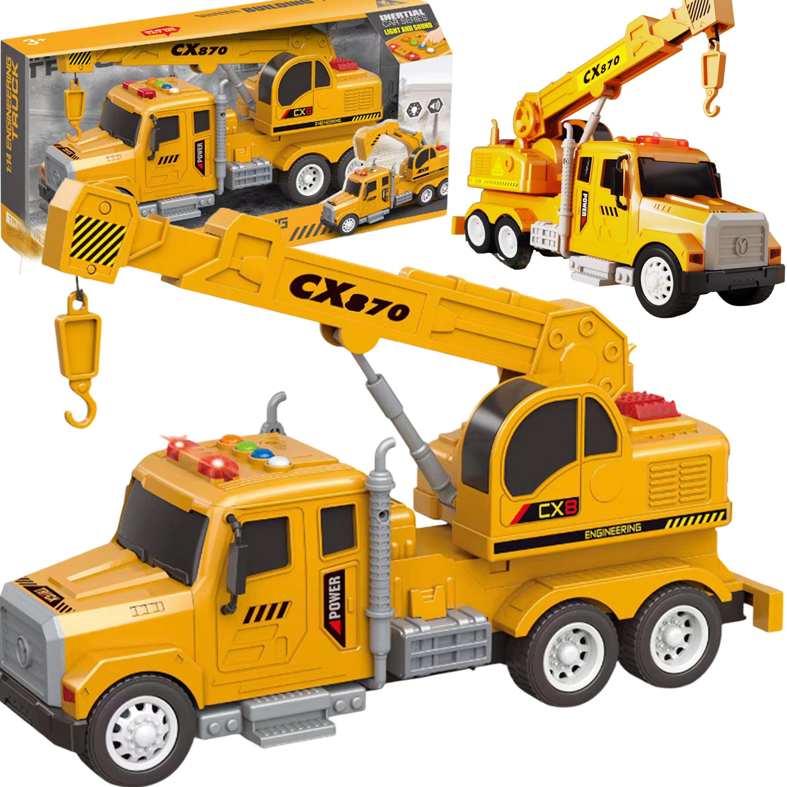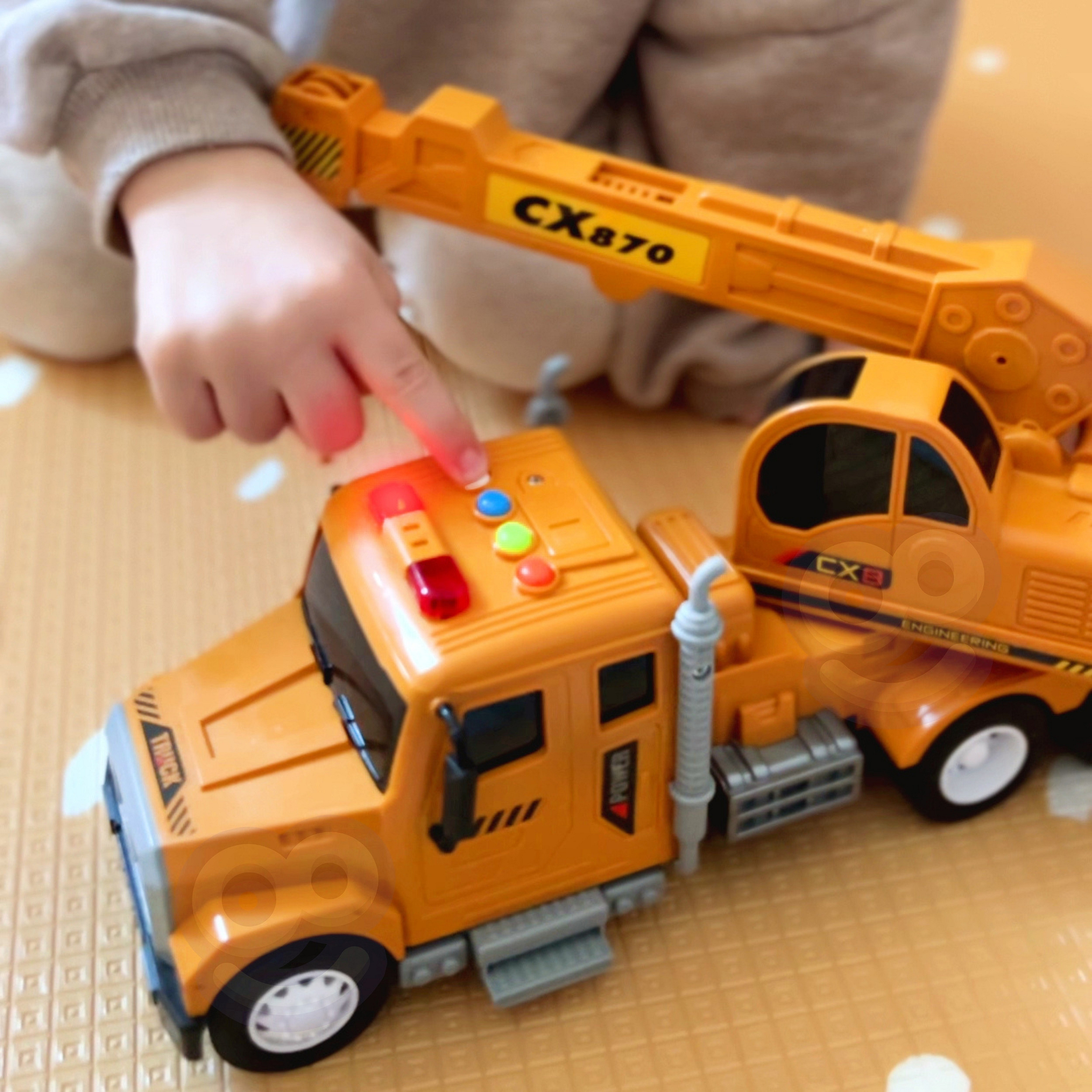 Interaktywny dźwig z ruchomym hakiem od marki WOOPIE sprawi, że każda zabawa twojego dziecka będzie niesamowitą przygodą! Wyposażony w dźwięki, efekty świetlne i ruchome elementy, dostarczy godzin kreatywnej zabawy. Dźwig posiada wiele funkcji takich jak: regulowana wysokość i długość ramienia, możliwość manipulowania linką haku oraz światła na dachu jak w prawdziwym dźwigu. Zabawka zrobiona jest w skali 1:14 a każdy element jest starannie dopracowany! Przygoda czeka – pozwól swojemu dziecku wcielić się w rolę operatora wymarzonego auta!